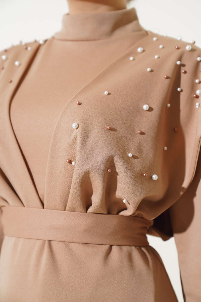 Kolları Fiyonk Detaylı Selanik Elbise Taş