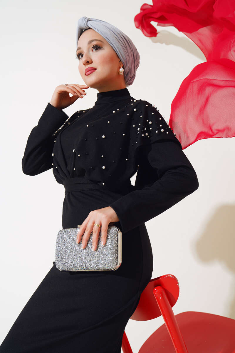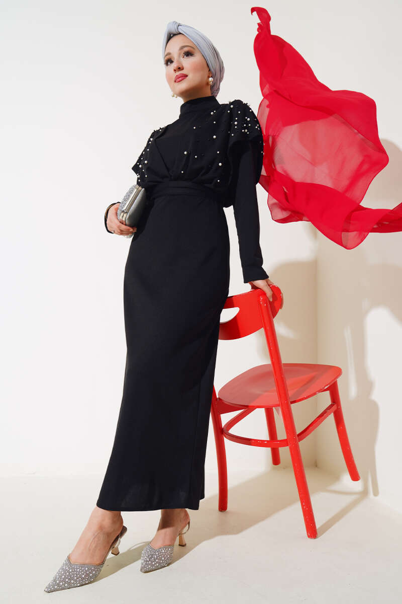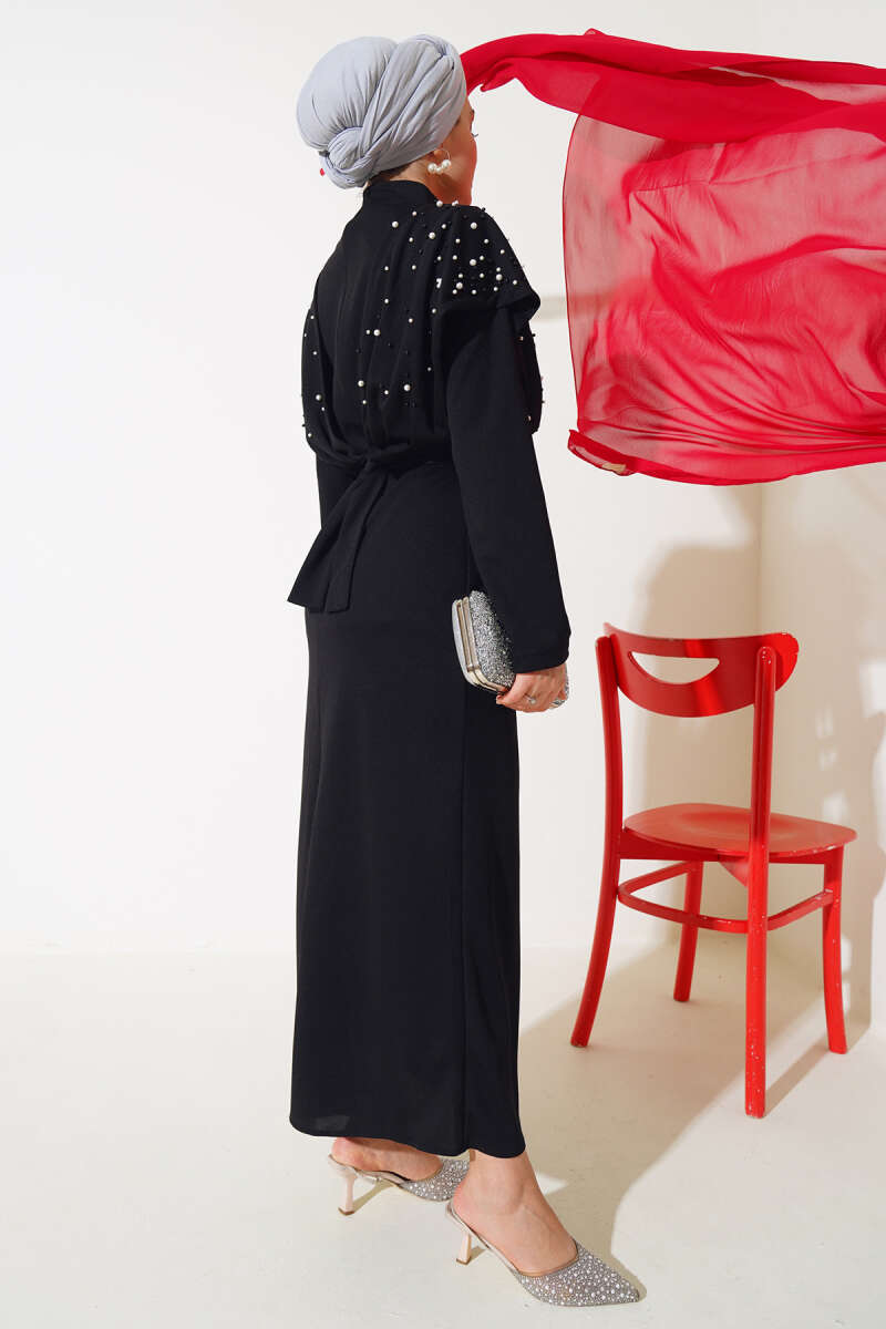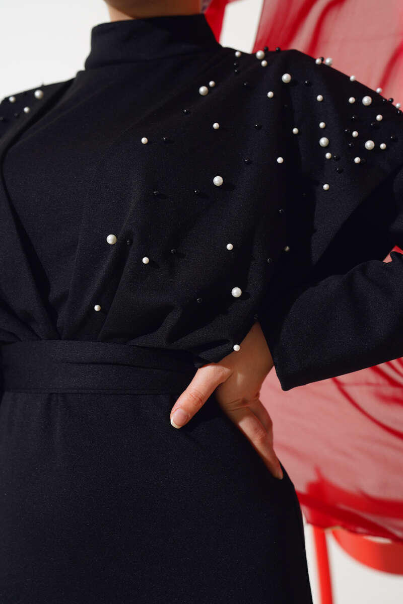 İnci Süslemeli Etekli Triko İkili Takım Siyah
