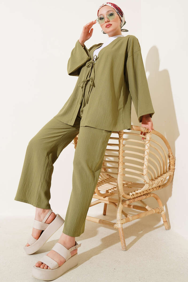 Önü İp Bağcıklı Krinkıl İkili Takım Çağla Yeşili
