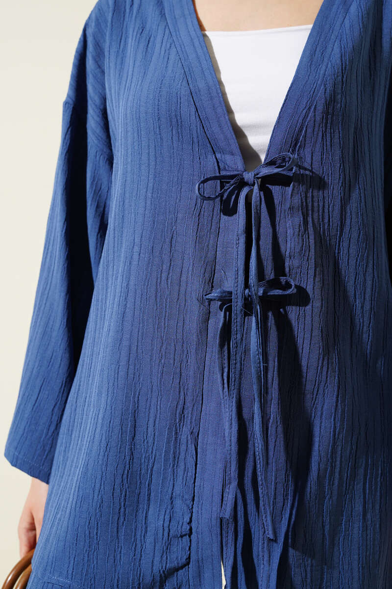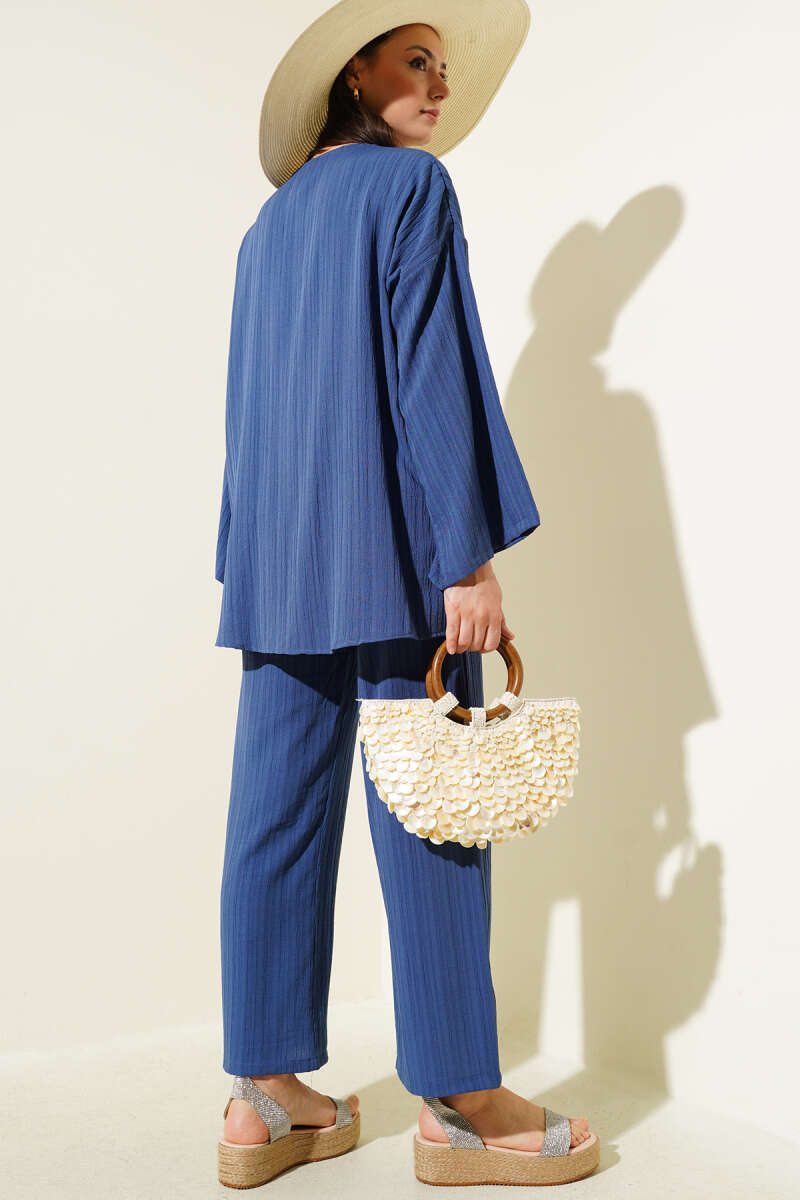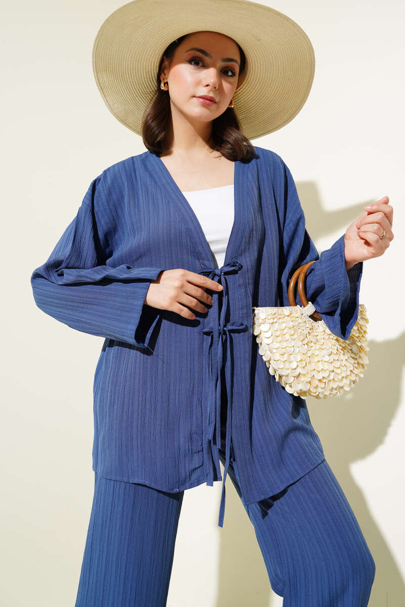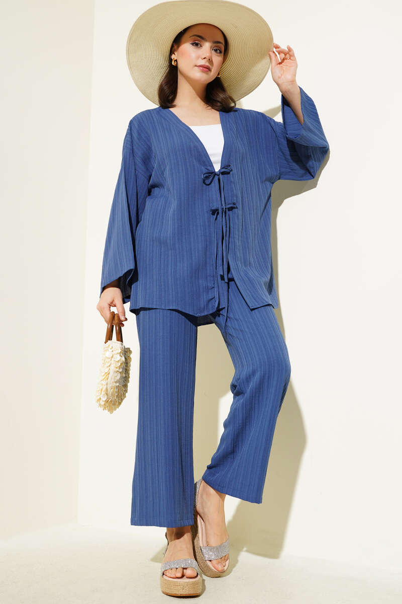 Önü İp Bağcıklı Krinkıl İkili Takım İndigo