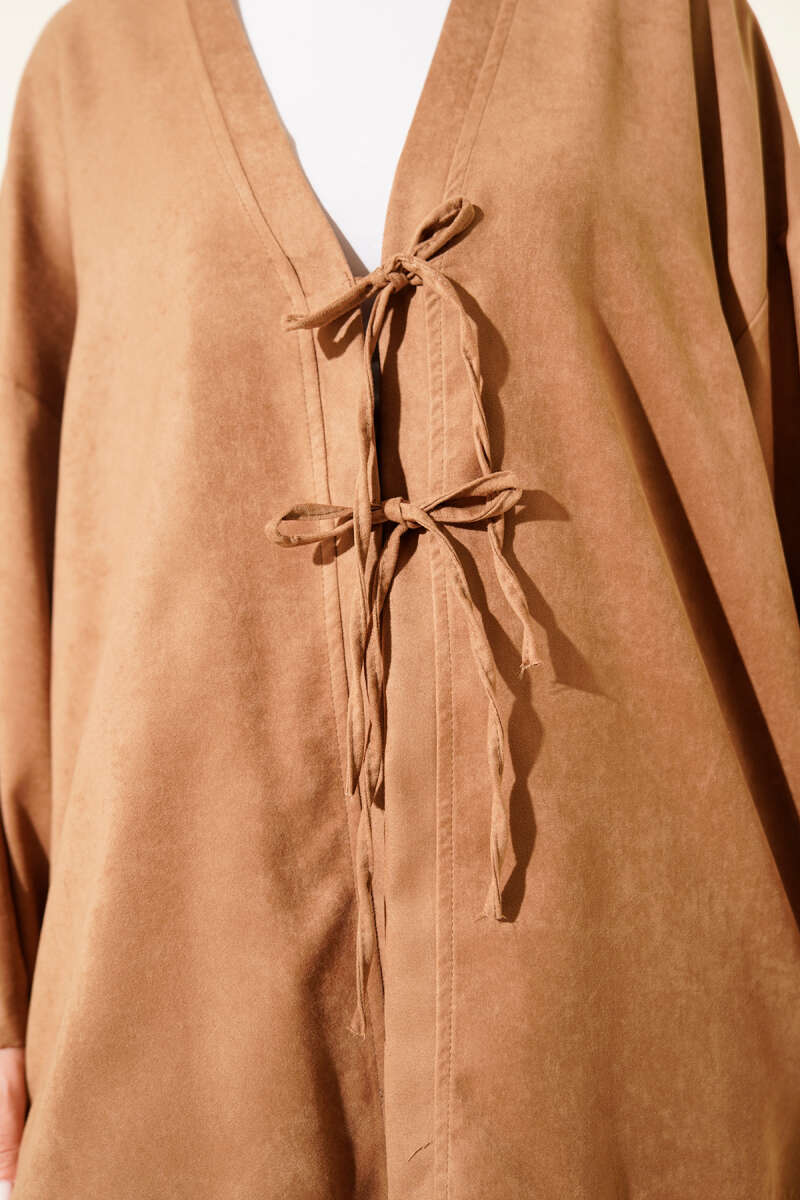 Yandan Dikişli Bağcıklı Hırka Yağ Yeşili