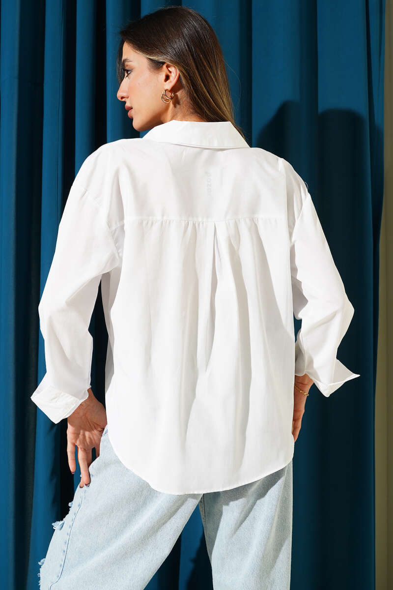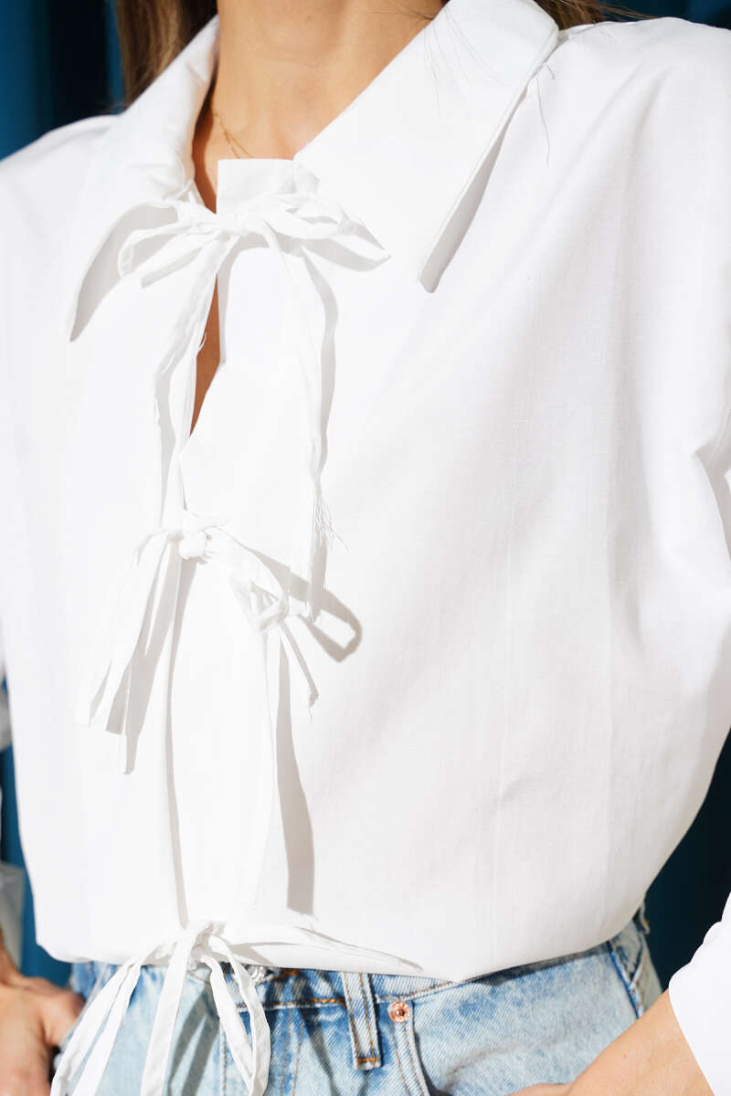 Önü İp Bağlamalı Gömlek Beyaz