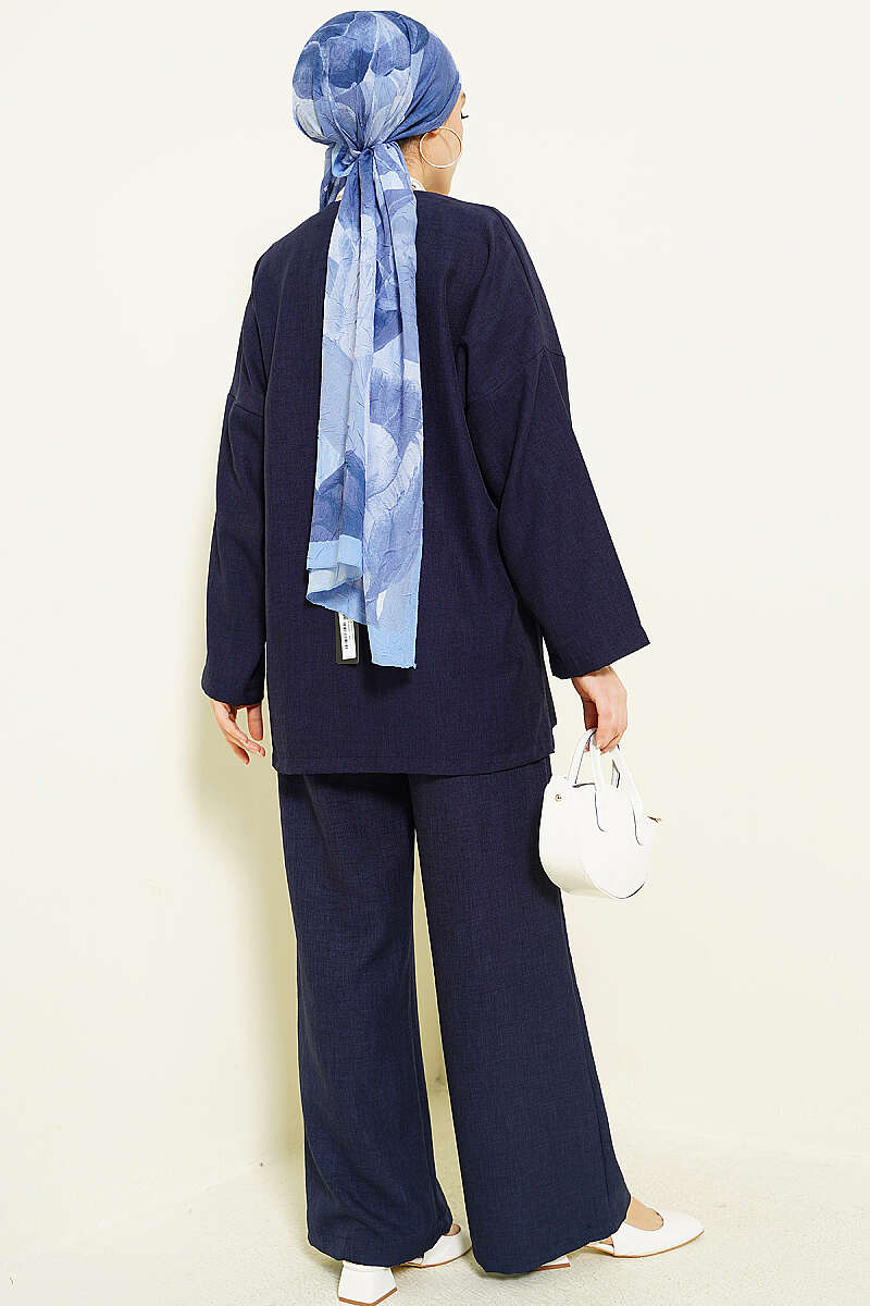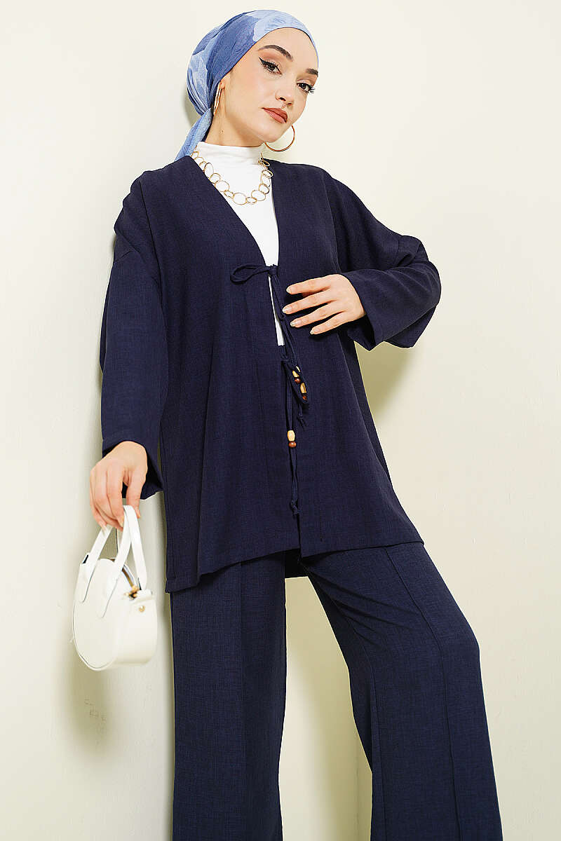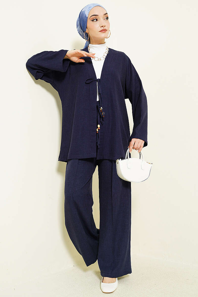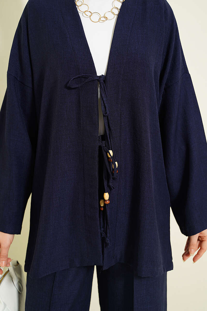 Önü İp Bağlamalı Kimono İkili Takım Lacivert