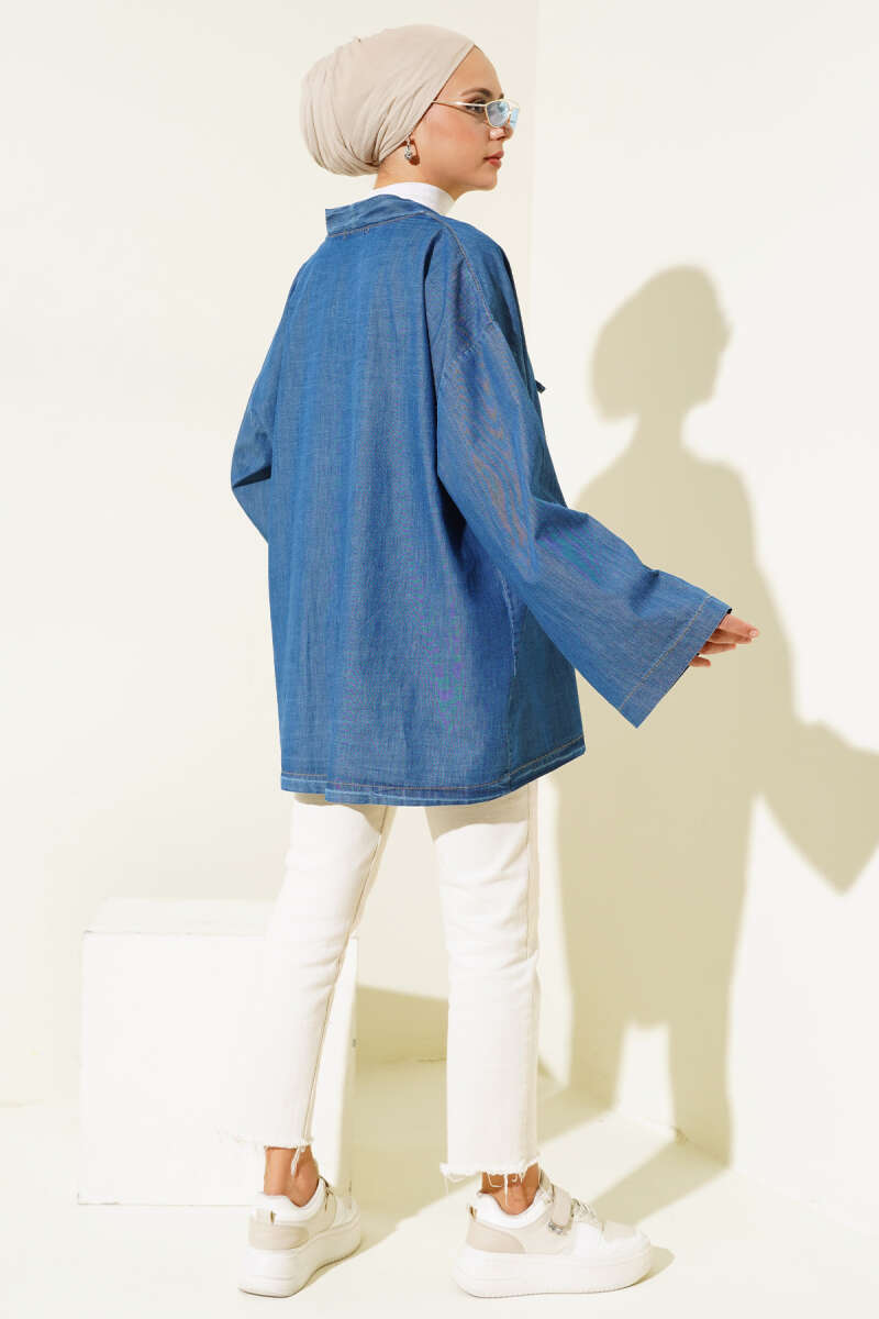 Önü İp Bağlamalı Kot Kimono Kot Mavisi