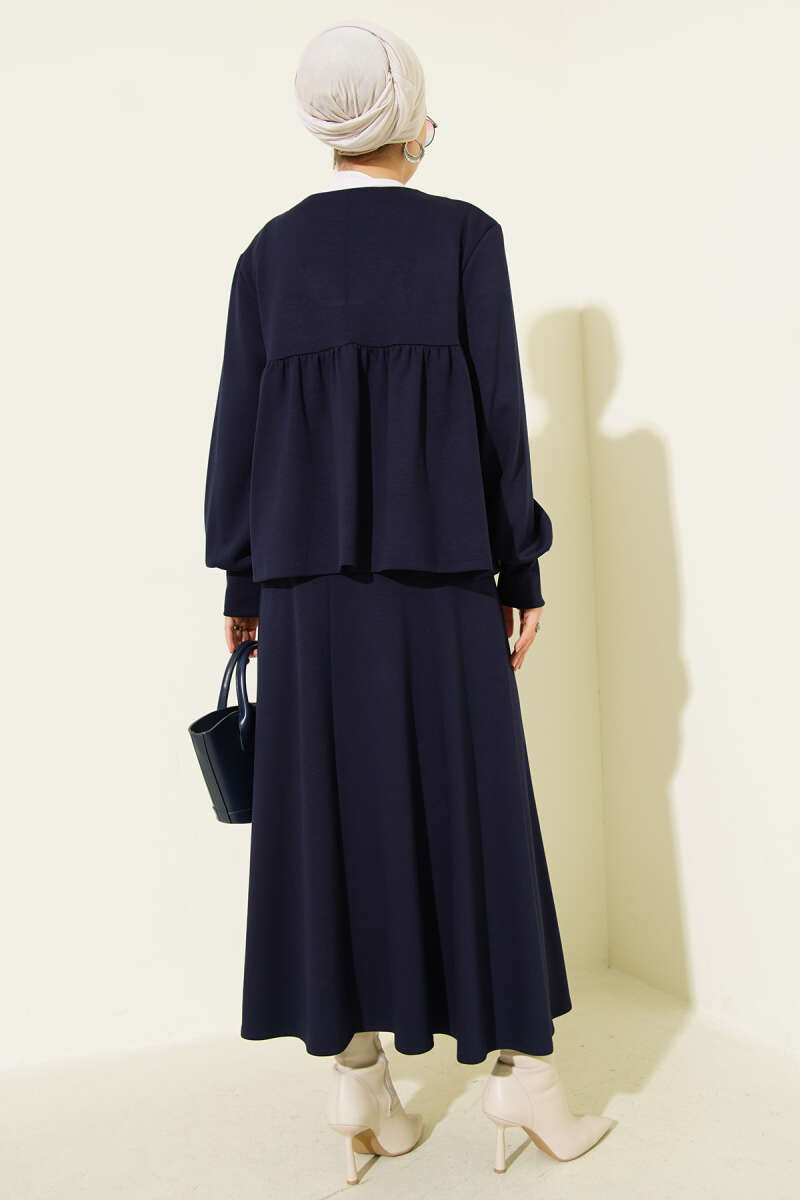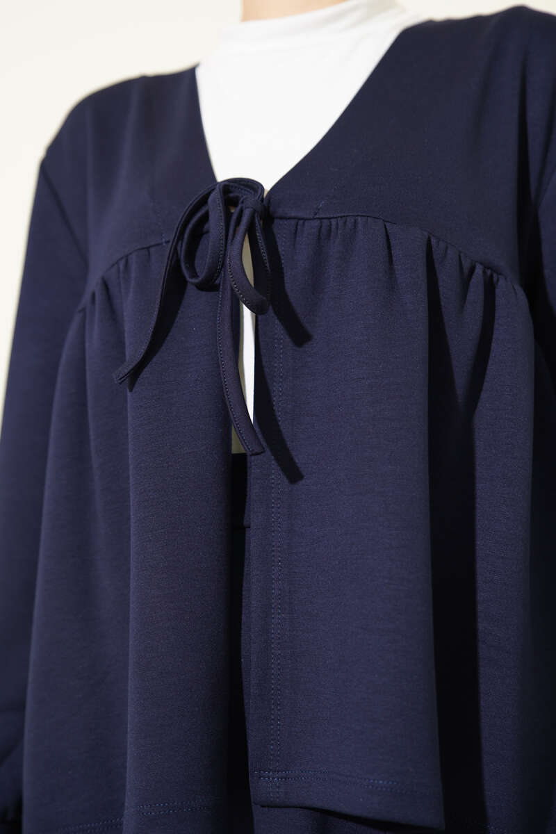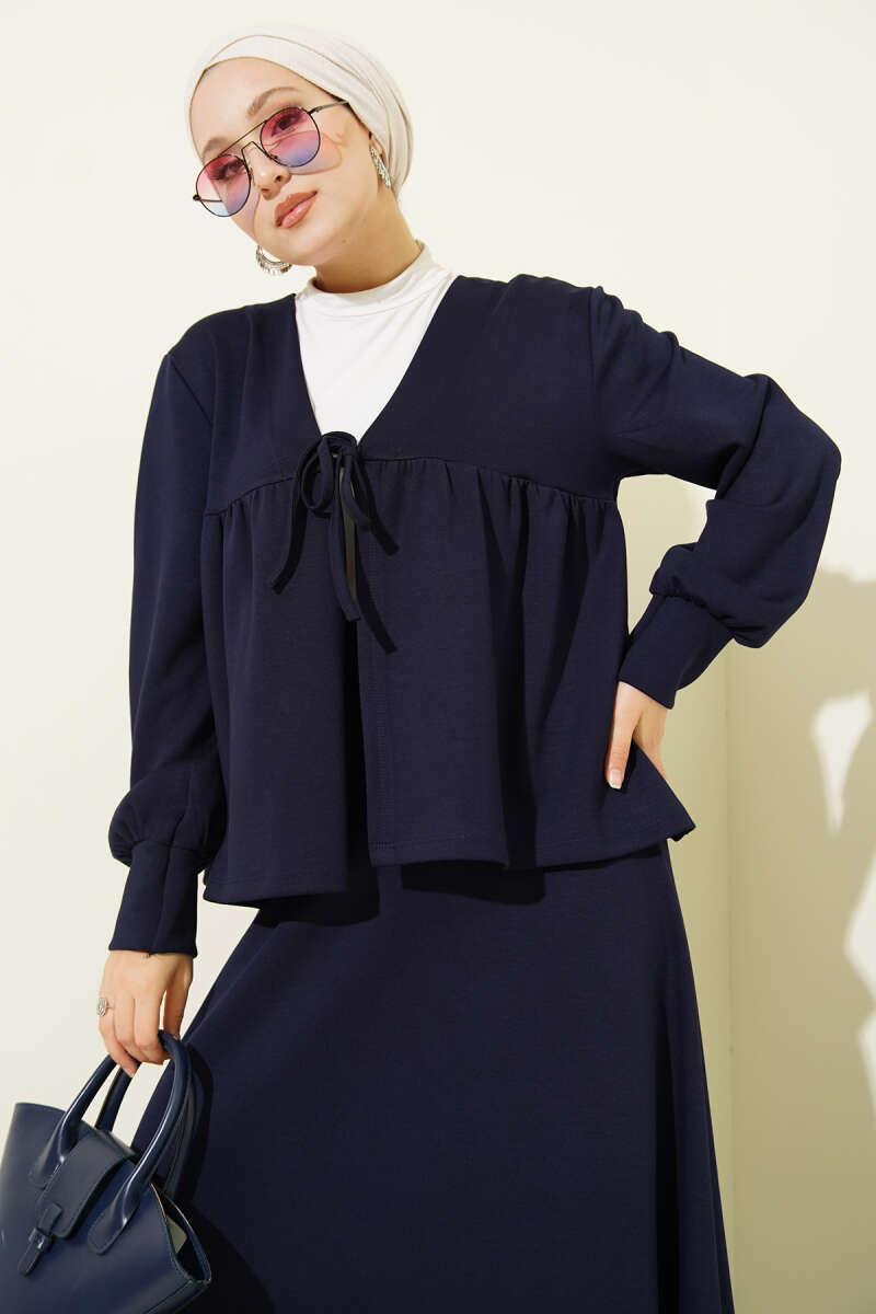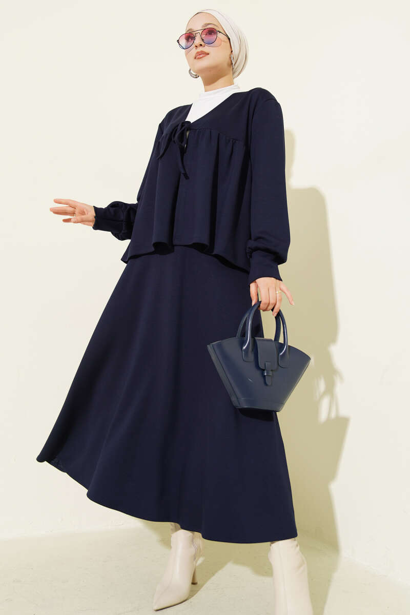 Önü İp Bağlamalı Loyşa Etekli İkili Takım Lacivert