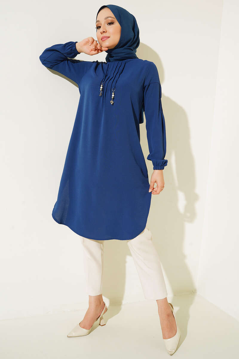 Yeni sezon tuniğimiz şık ve sade tasarımıyla sizler için geldi. Tuniğimiz uzun yapıdadır. Kol kısımları büzgü şeklinde dikişlidir. Bilekleri lastiklidir. Etek uçları yırtmaçlı ve oval kesimdir. Oval yakadır. Oldukça rahattır. Her kıyafetinizle rahatlıkla kombin yapabilirsiniz. Farklı renk seçenekleri mevcuttur.