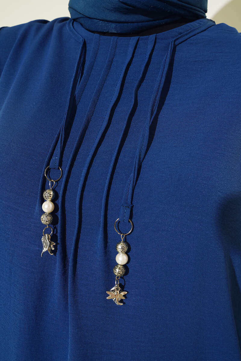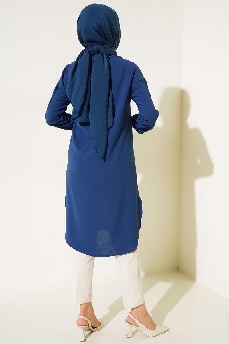 Kot Kol ve Cepli Angora Tunik Lacivert