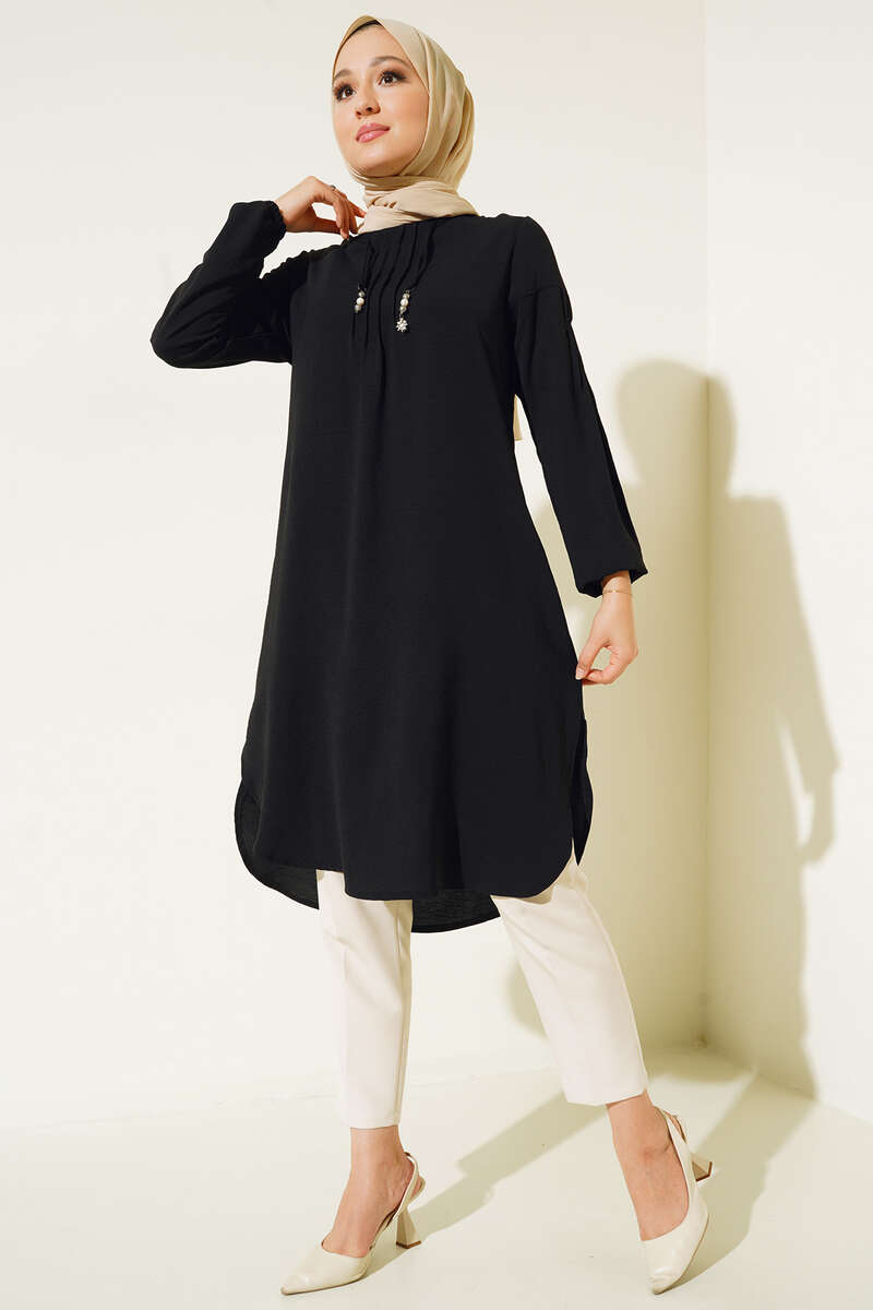Yeni sezon tuniğimiz şık ve sade tasarımıyla sizler için geldi. Tuniğimiz uzun yapıdadır. Kol kısımları büzgü şeklinde dikişlidir. Bilekleri lastiklidir. Etek uçları yırtmaçlı ve oval kesimdir. Oval yakadır. Oldukça rahattır. Her kıyafetinizle rahatlıkla kombin yapabilirsiniz. Farklı renk seçenekleri mevcuttur.