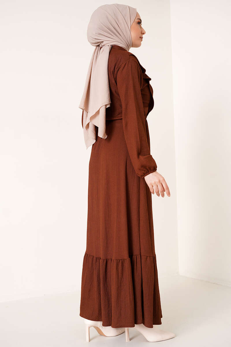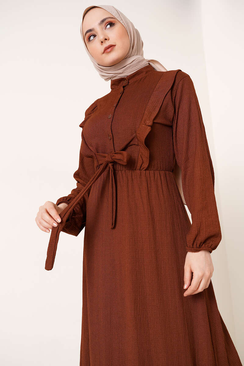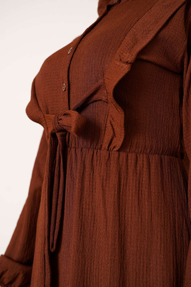 Bel Pensli İp Kuşaklı Elbise Kahve