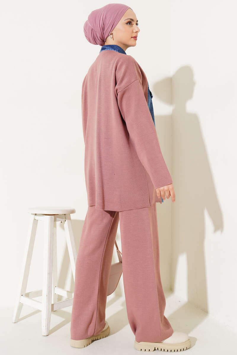 Yaka Kürklü Fermuarlı Triko İkili Takım Taba