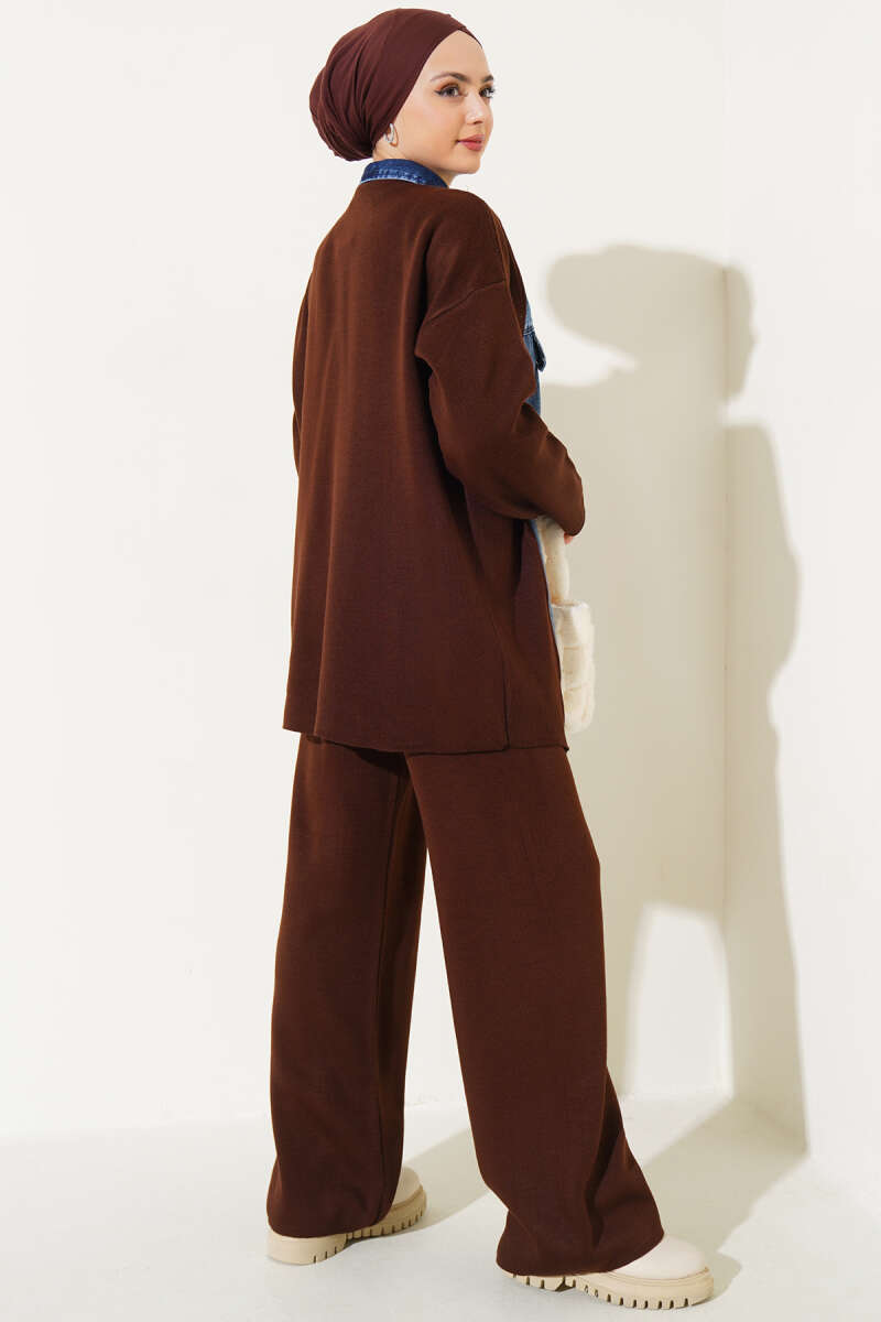 Çapraz Bağlamalı Triko Takım Füme