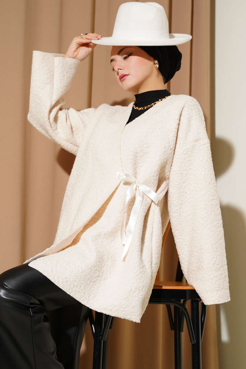 Tek Düğmeli Kemerli Sakallı Ceket Bej