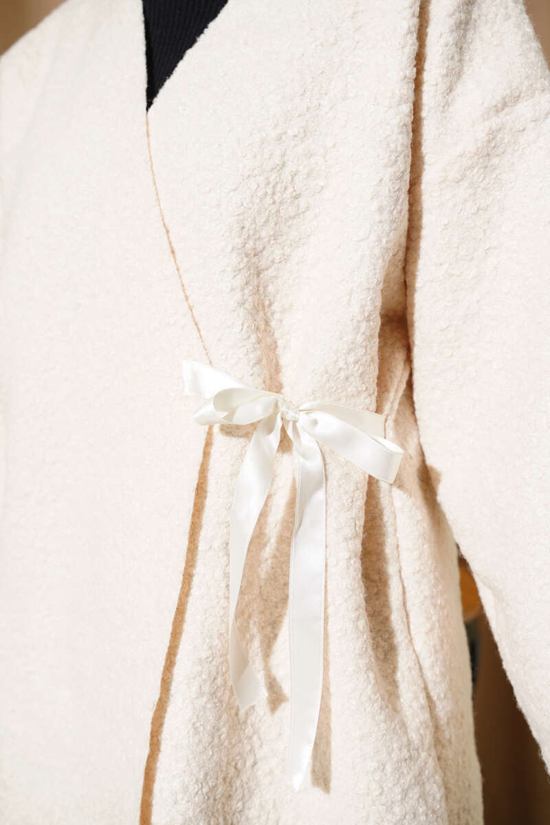 Gömlek Yaka İp Kuşaklı Deri Ceket Ekru