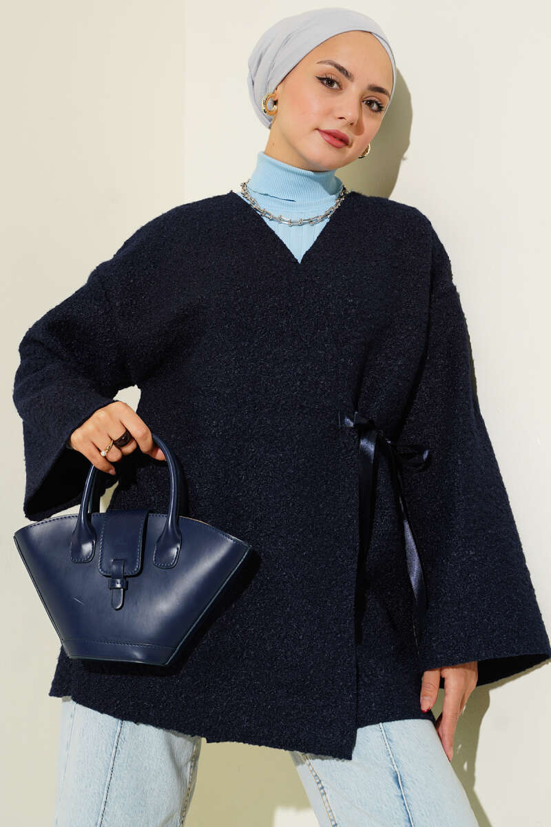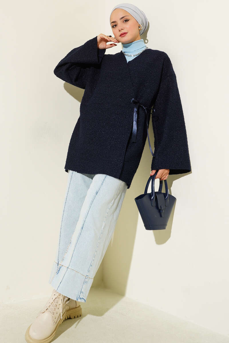 Önü Kurdeleli Buklet Ceket Yağ Yeşili