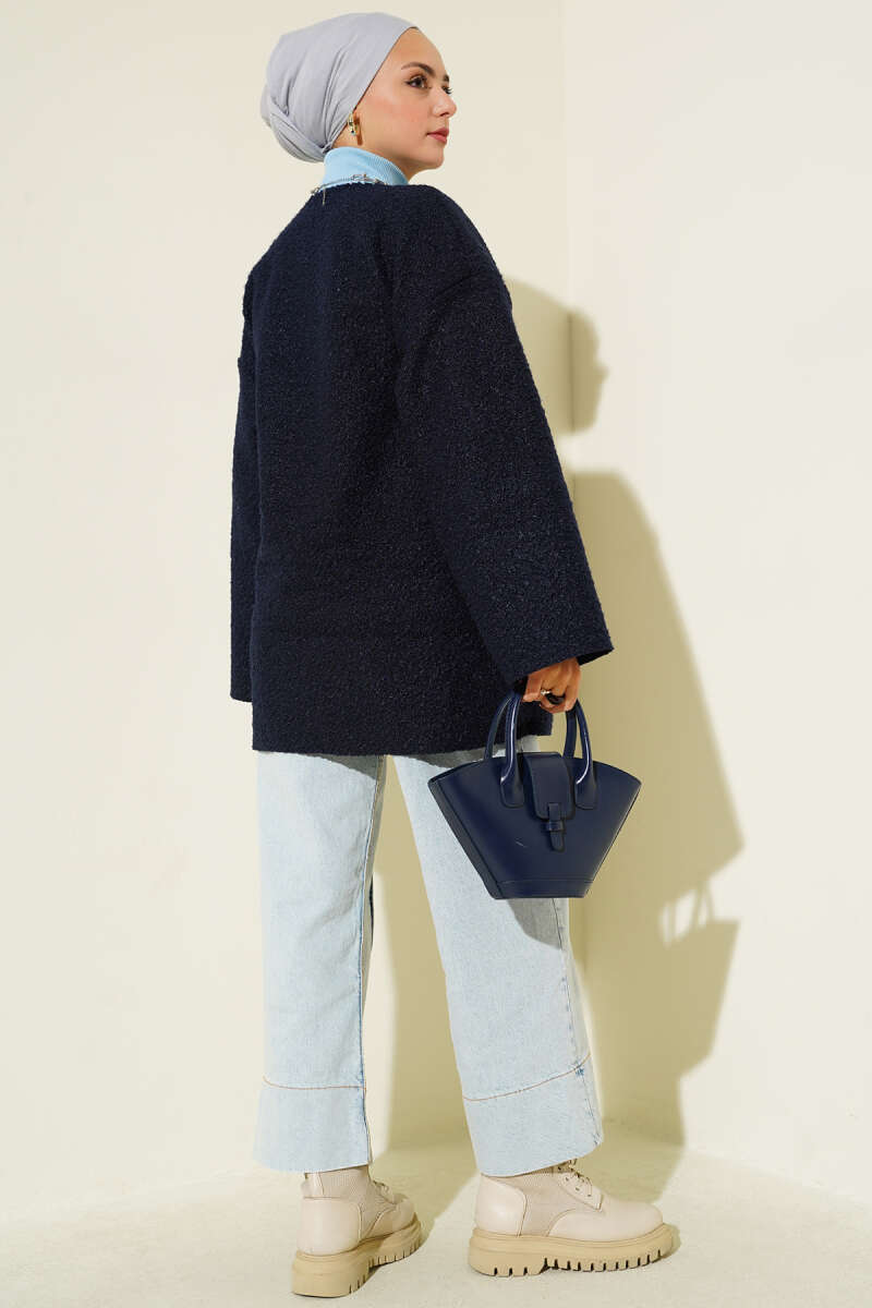 Gömlek Yaka Salaş Buklet Ceket Pudra