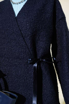 Önü Kurdeleli Buklet Ceket Mint Antrasit