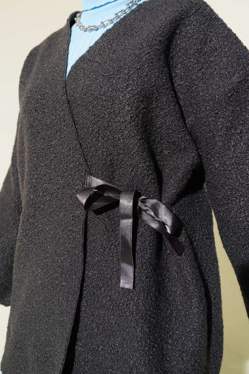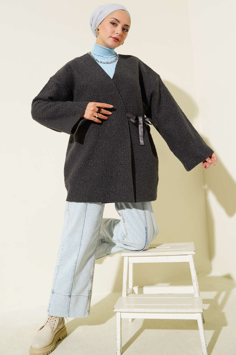 Önü Kurdeleli Buklet Ceket Yağ Yeşili