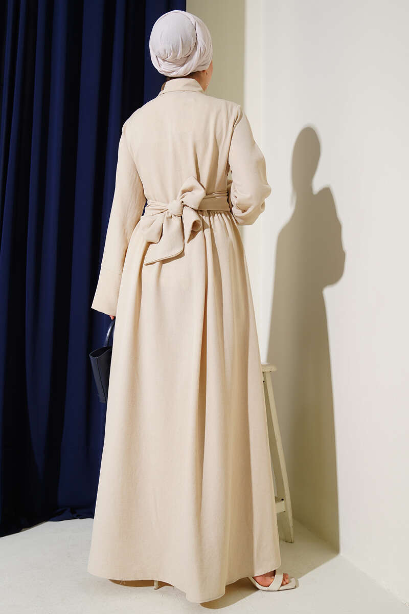 Gold Düğmeli Ribanalı Kaşe Kaban Bej