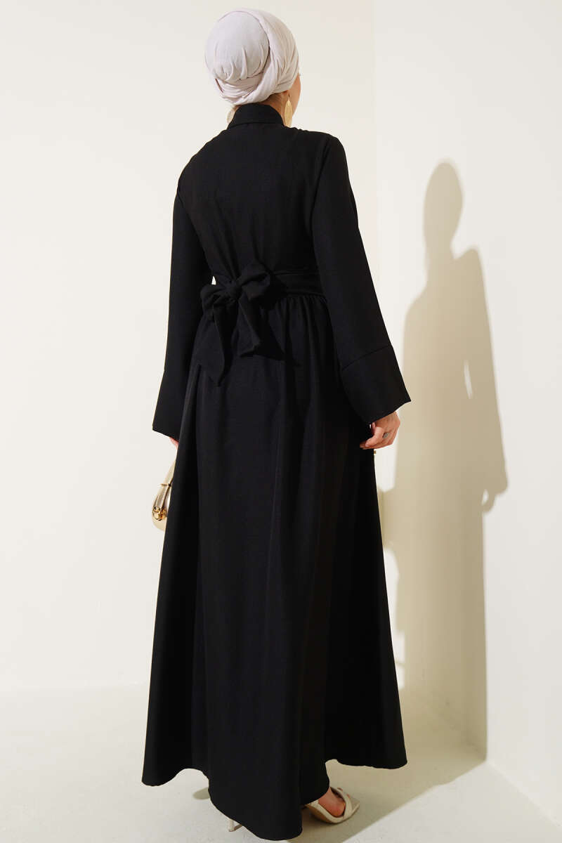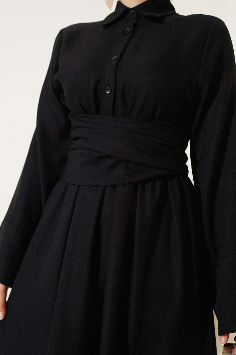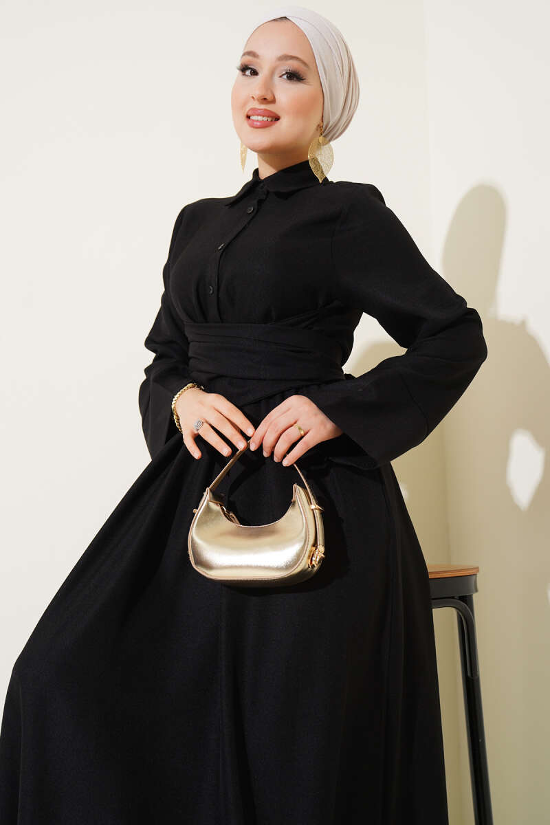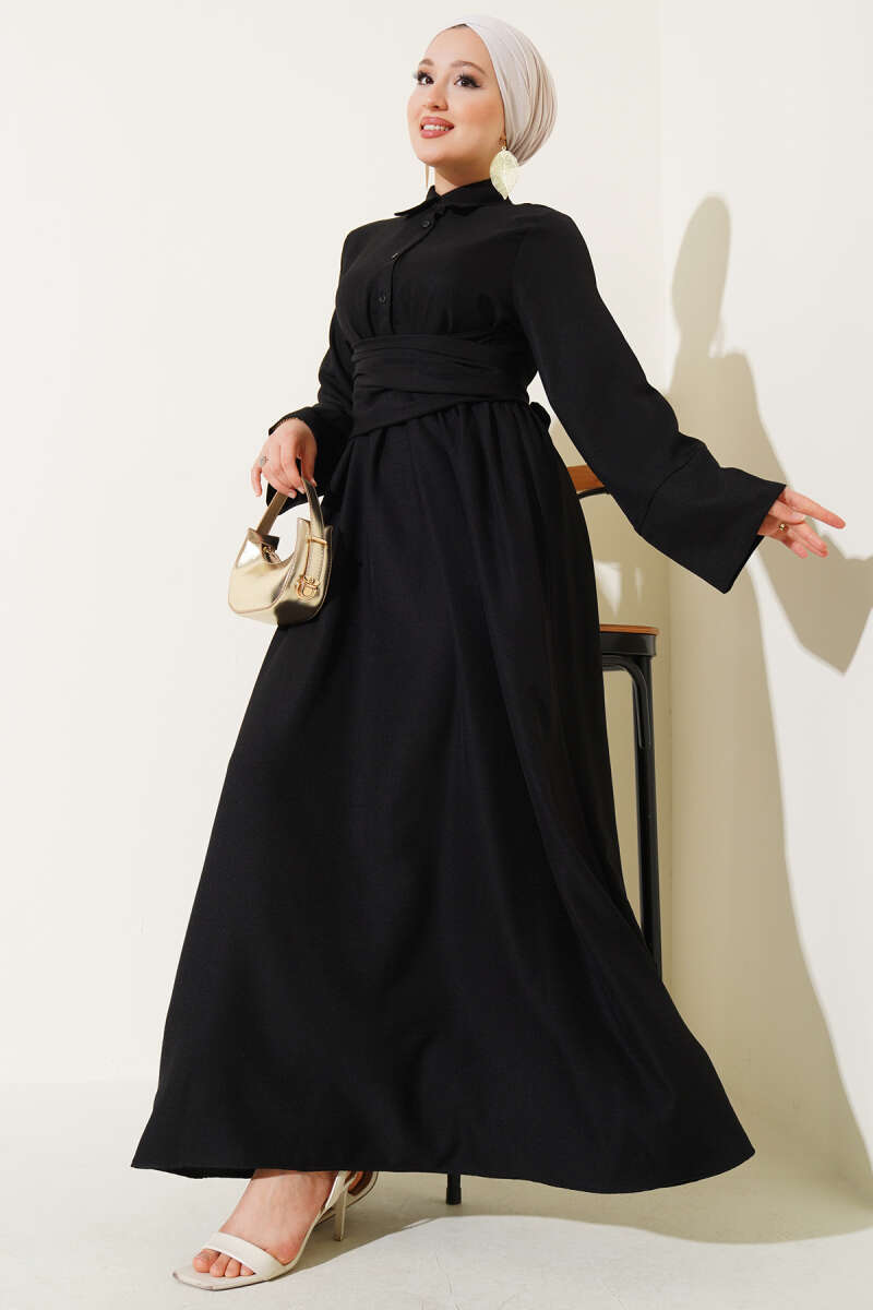 Bilek Bağlamalı Kuşaklı Abiye Elbise Siyah
