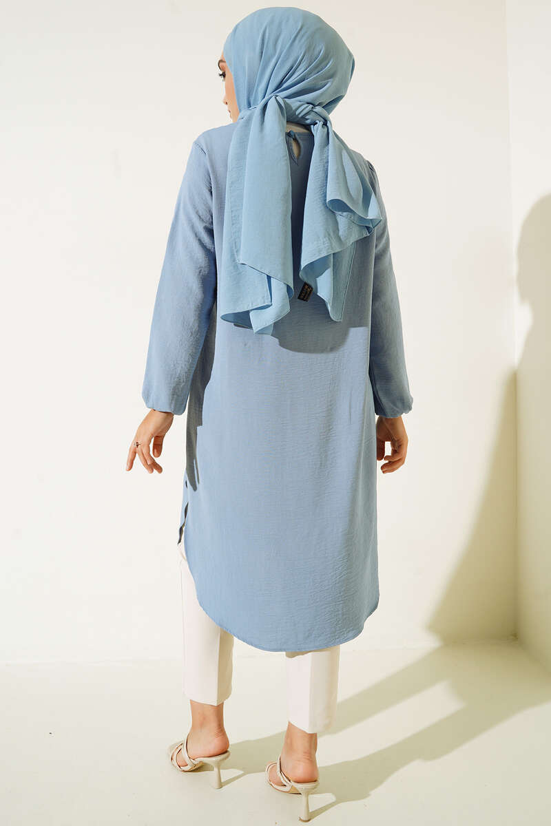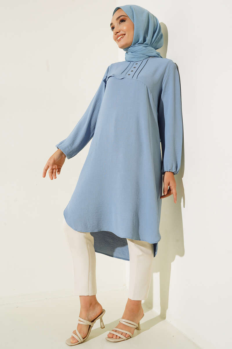 Yeni sezon tuniğimiz şık tasarımıyla dikkatleri üzerine çekmektedir. Tuniğimizin önü halka süslemelidir. Bilekleri lastiklidir. Etek yanları yırtmaçlı ve oval kesimdir. Ensesinde düğme bulunmaktadır. Her kıyafetinizle rahatlıkla kombin yapabilirsiniz. Farklı renk seçenekleri mevcuttur.