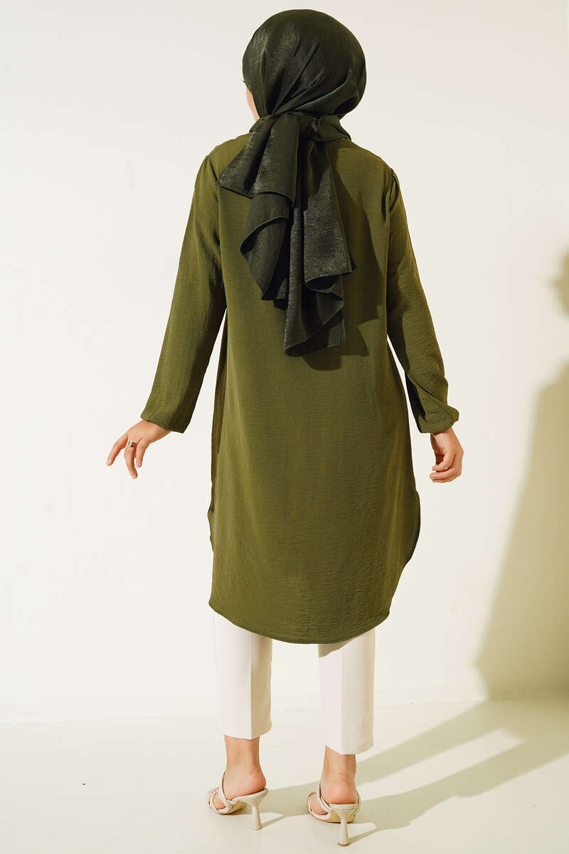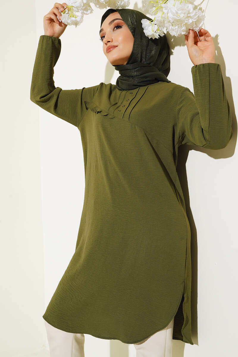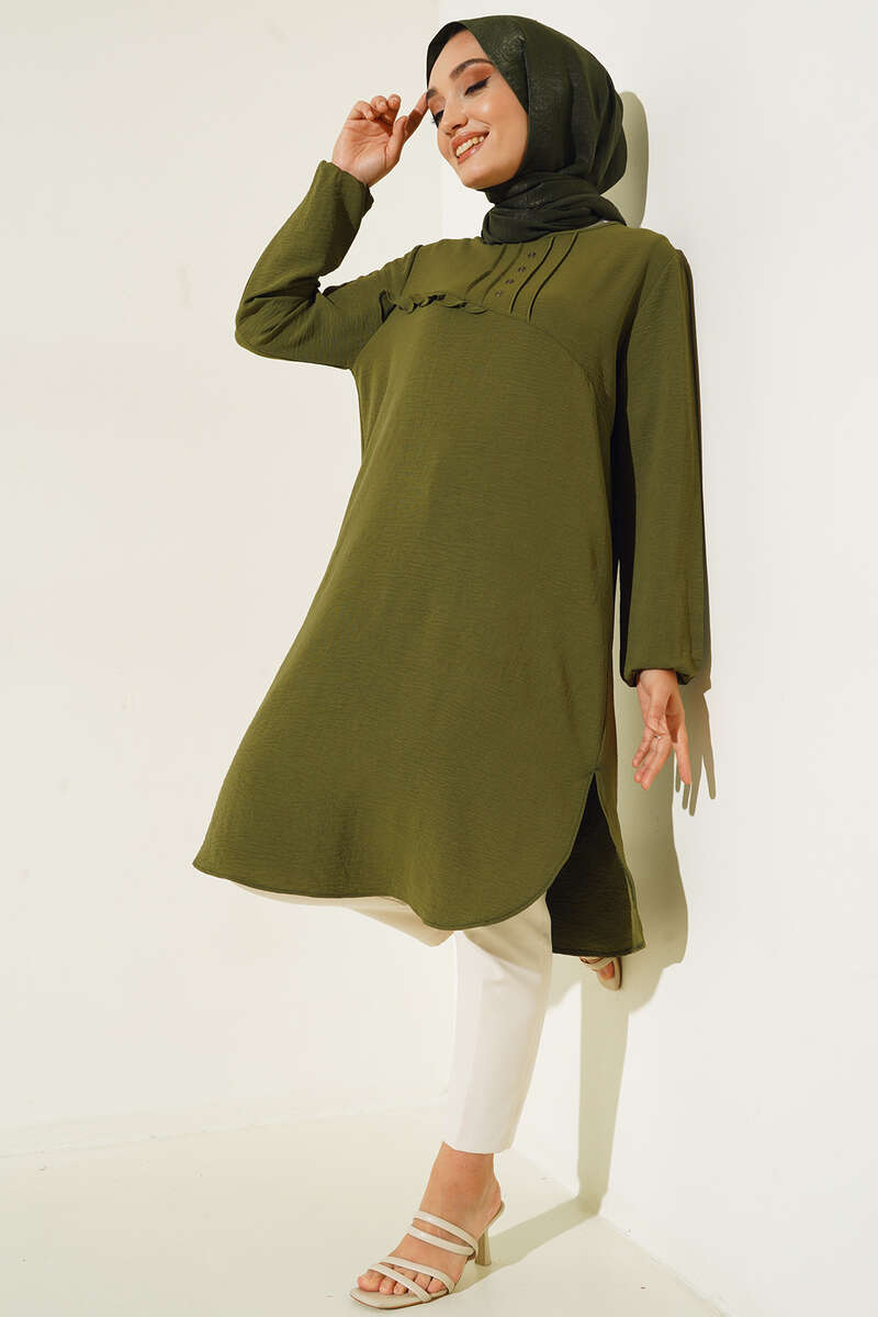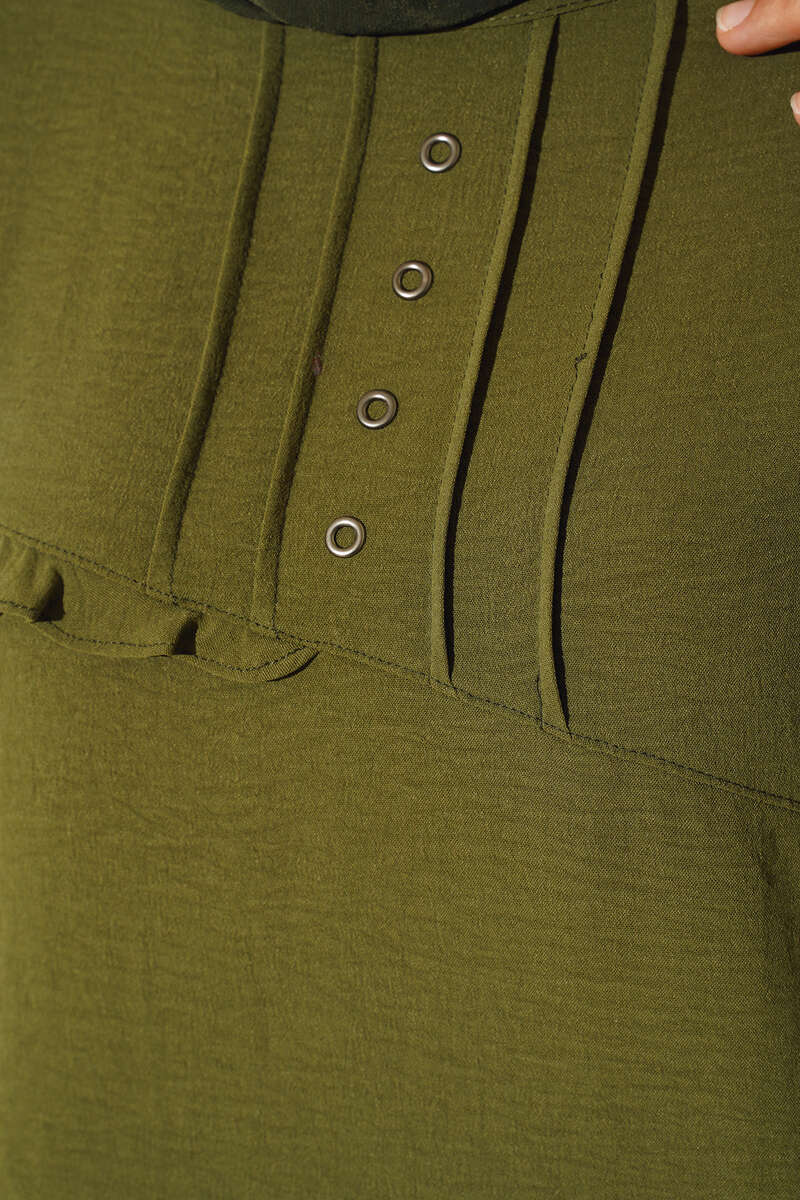 Önü Kuşgözü Yarı Pileli Tunik Haki