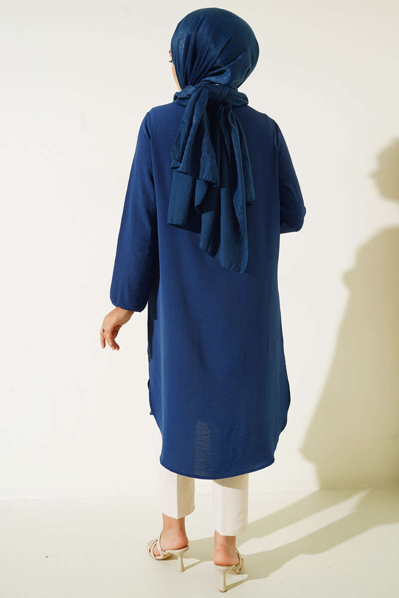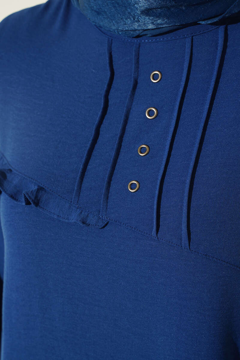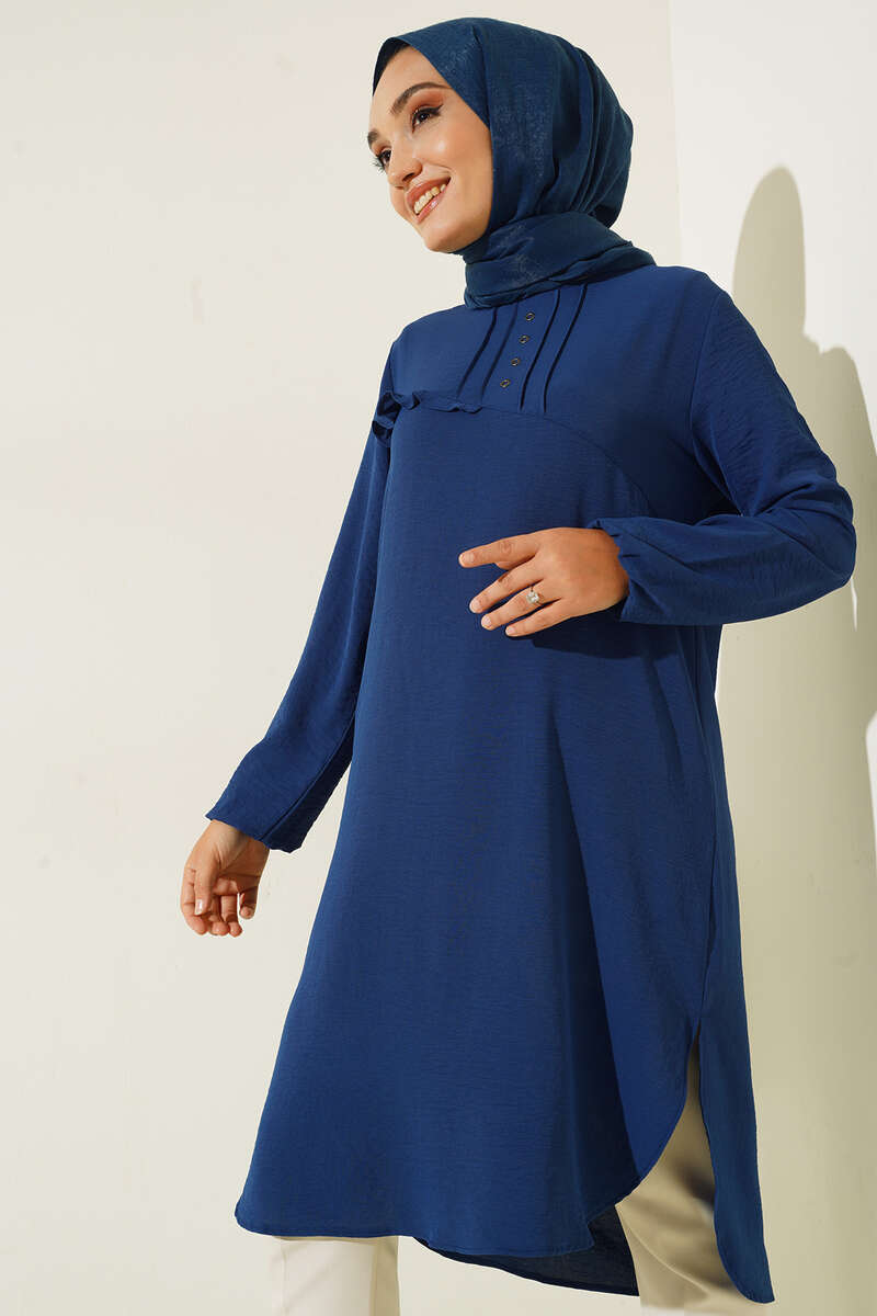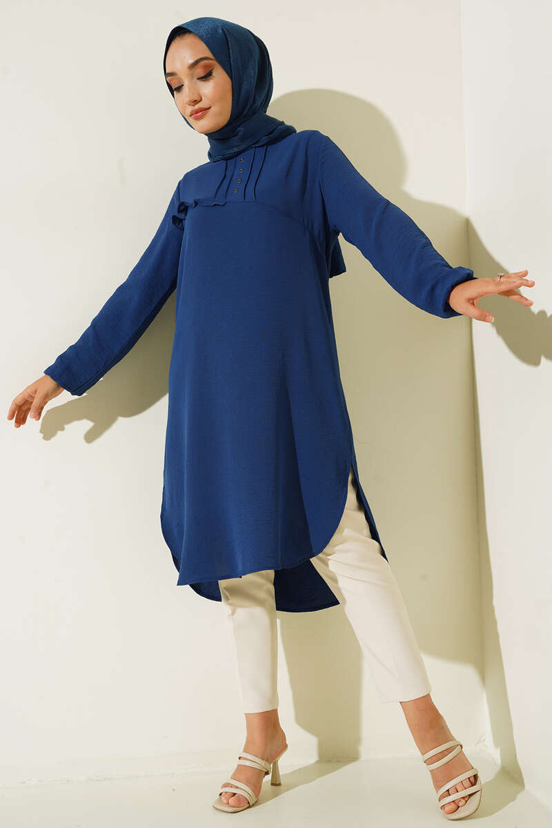 Önü Kuşgözü Yarı Pileli Tunik İndigo