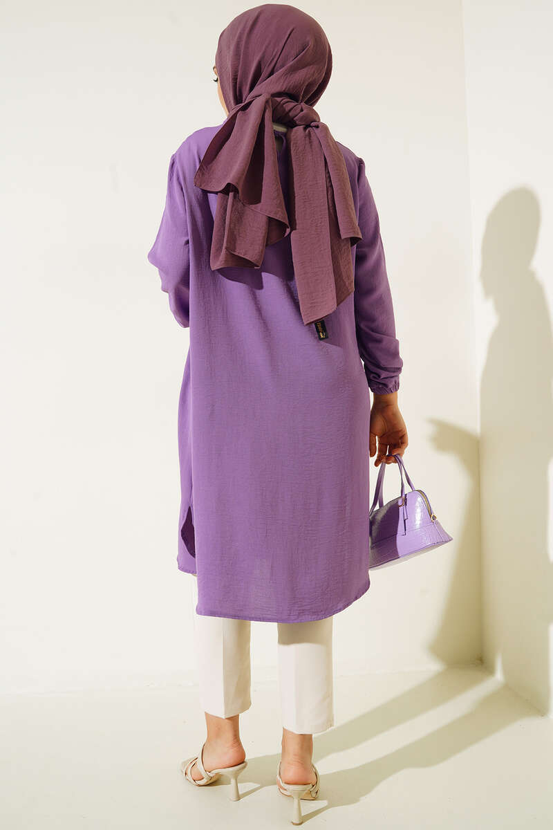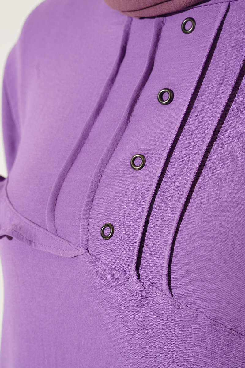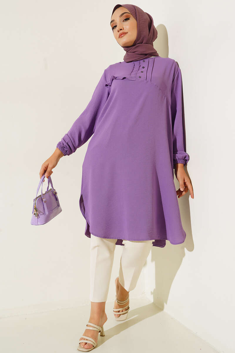 Önü Kuşgözü Yarı Pileli Tunik Lila