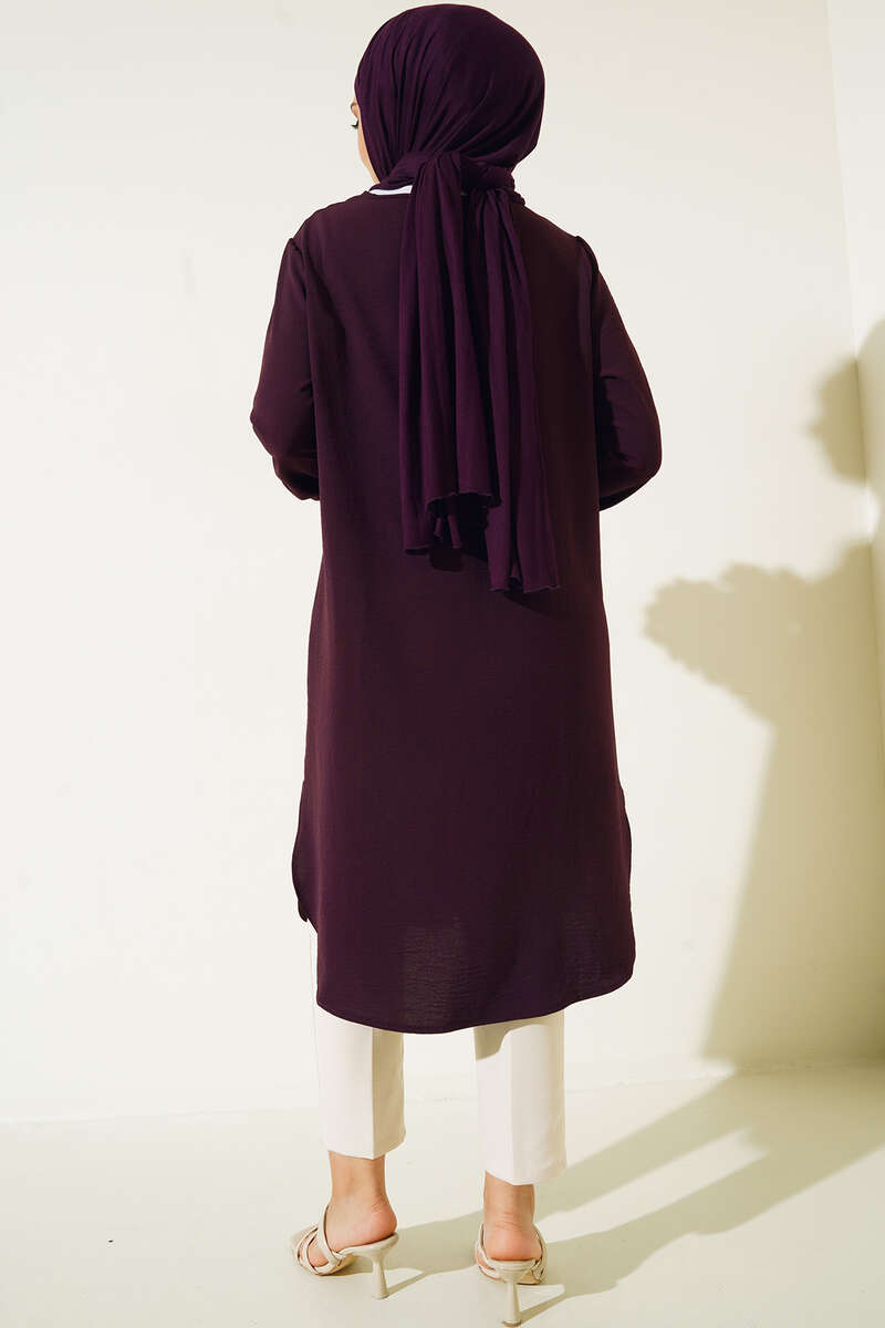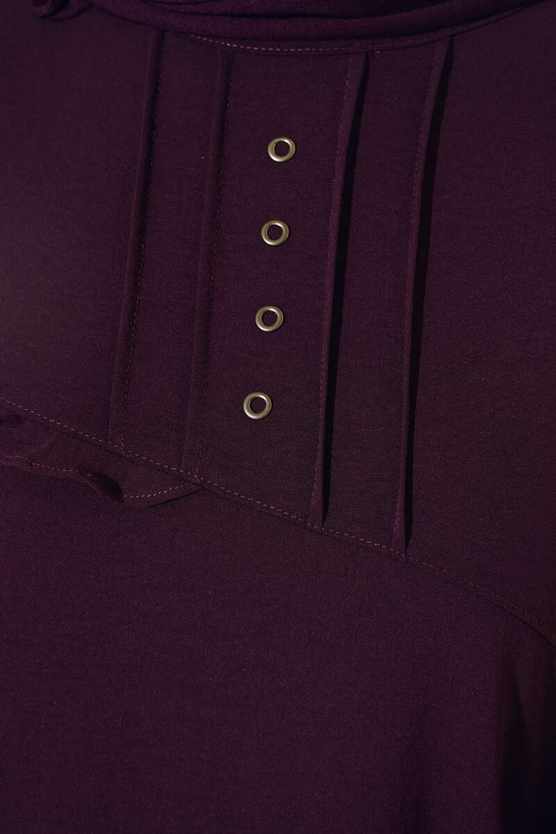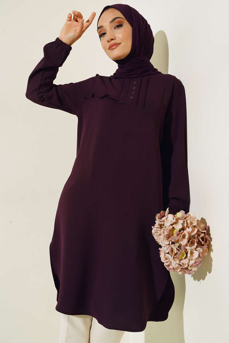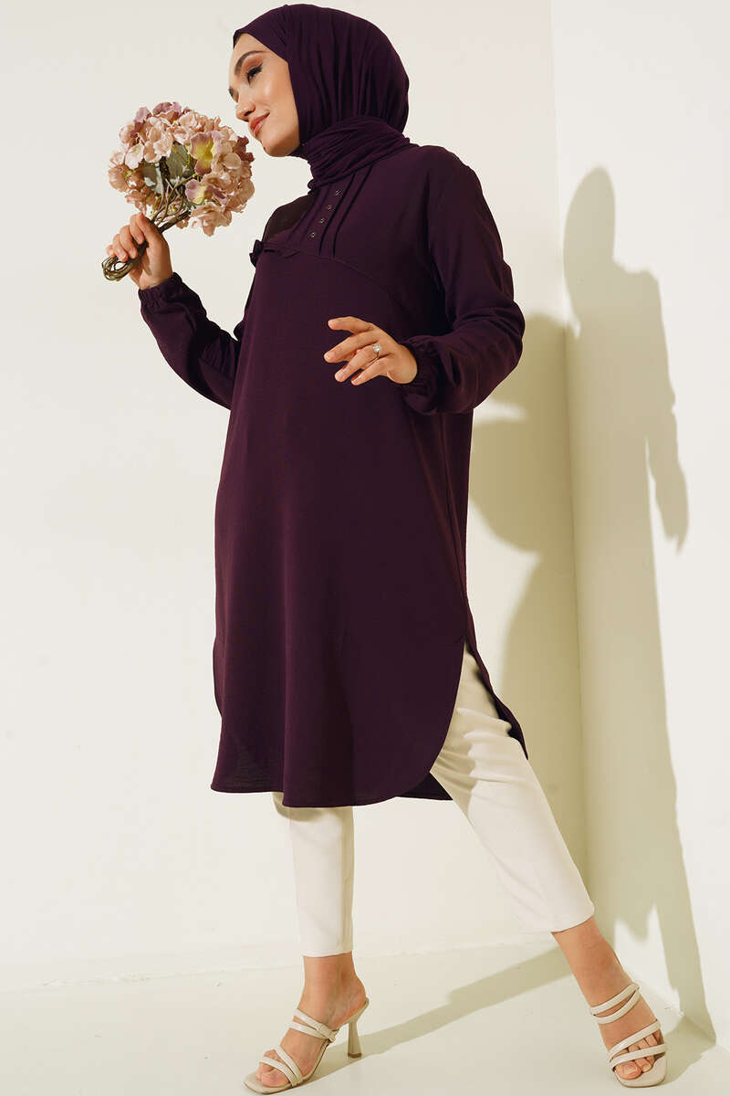 Önü Kuşgözü Yarı Pileli Tunik Mor