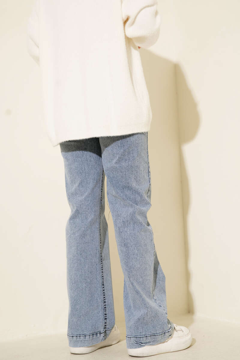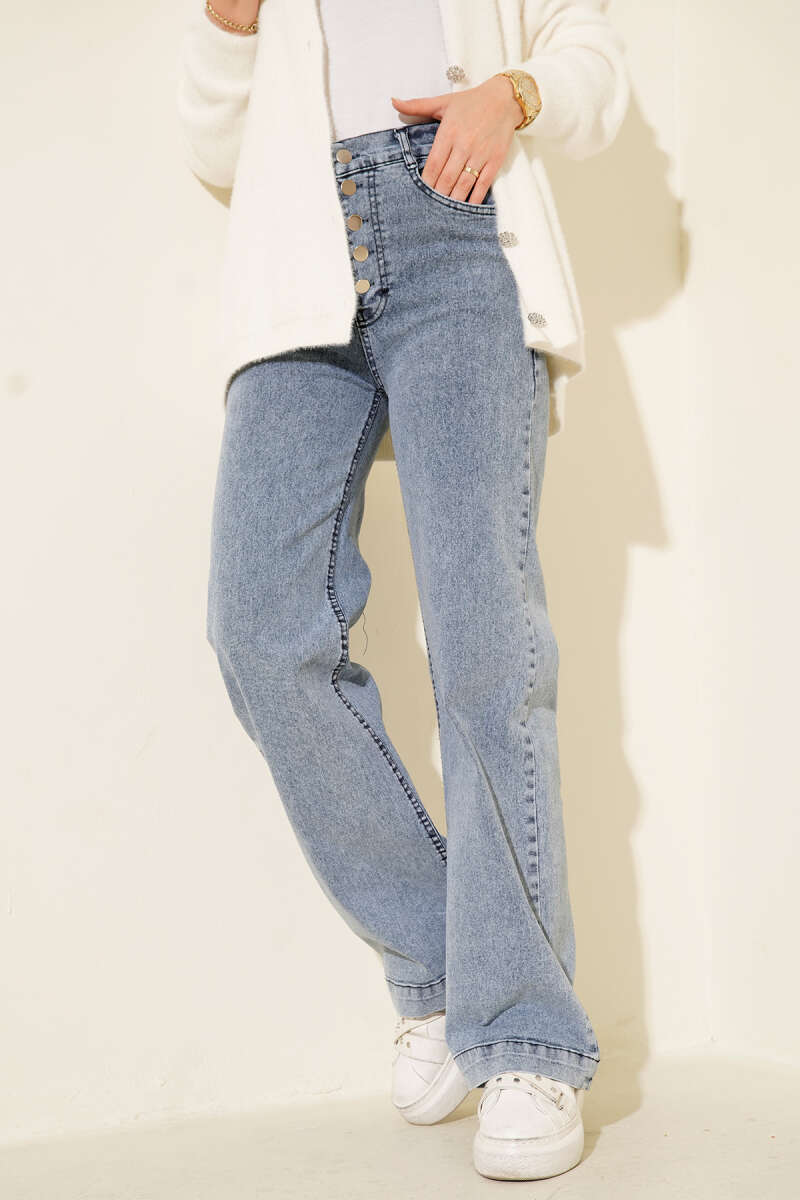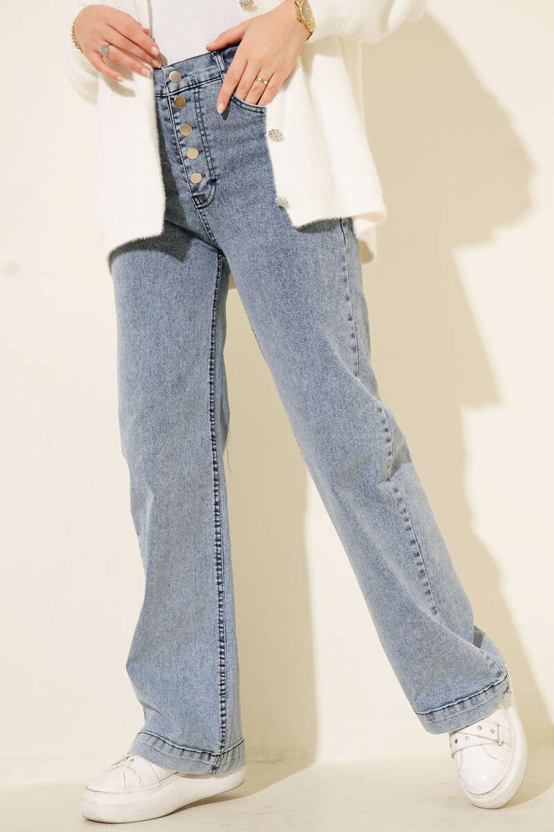 Önü Metal Düğmeli Bol Kot Pantolon Buz Mavisi