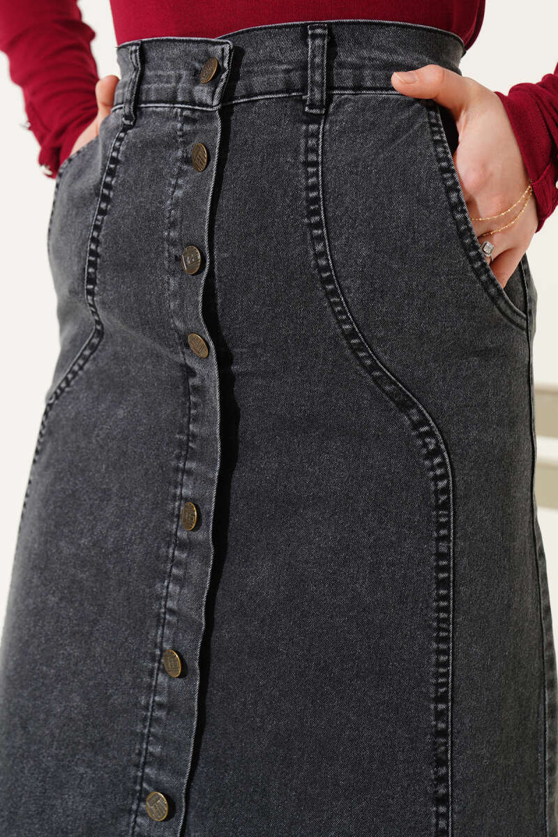 Beli Lastik Detaylı Kloş Scuba Etek Kahve