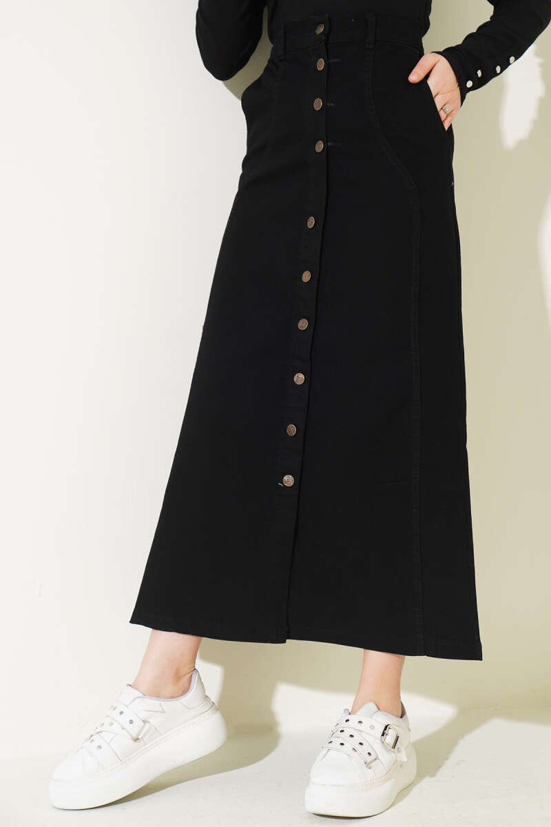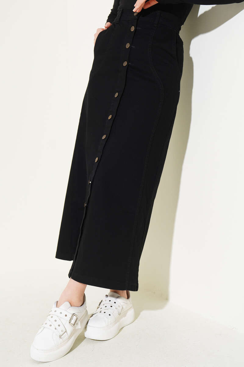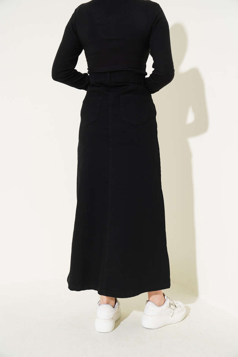İp Bağlamalı Kloş Scuba Etek Siyah