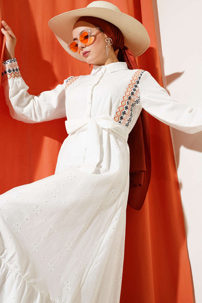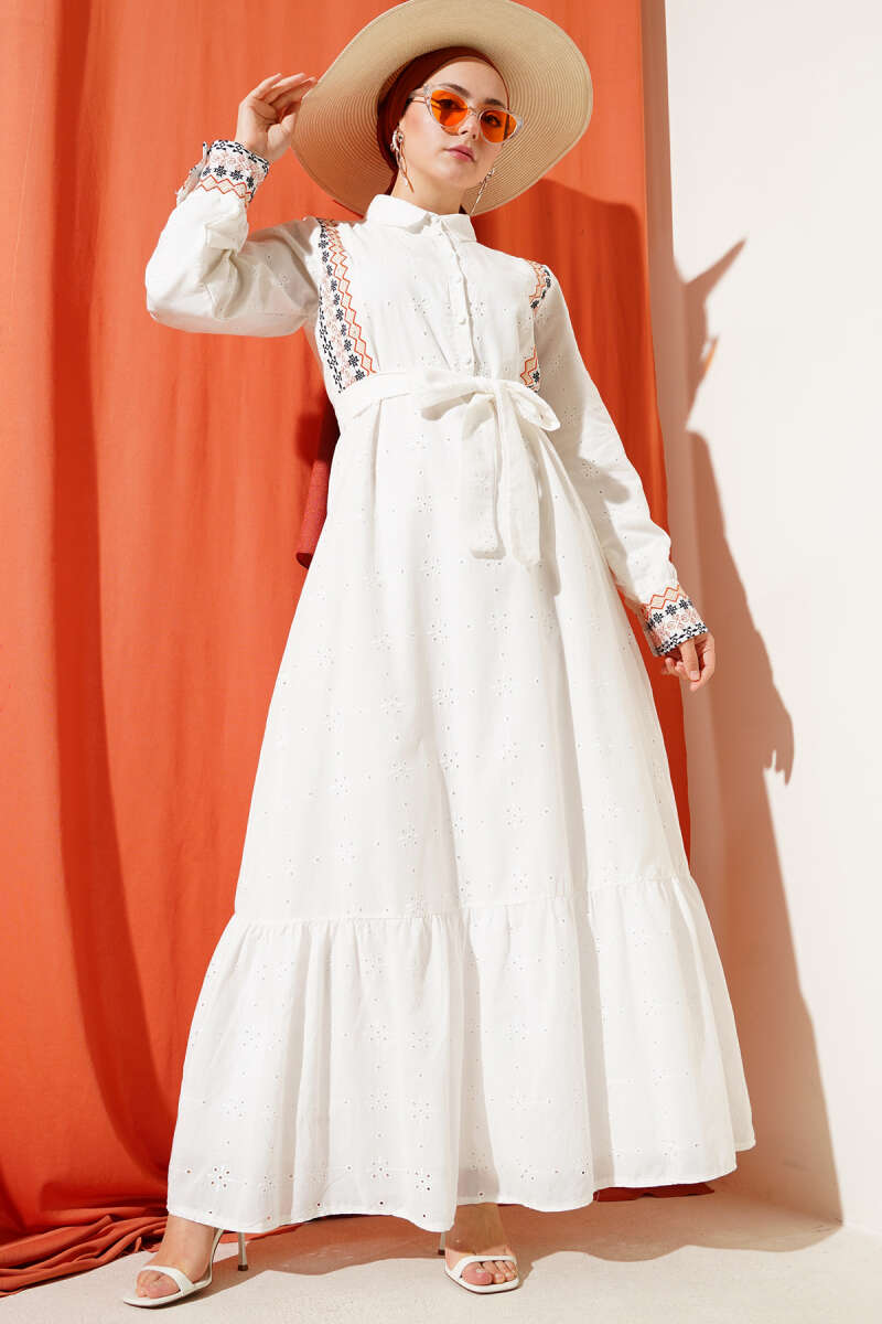 Kat Kat Kuşaklı Terikoton Elbise Haki