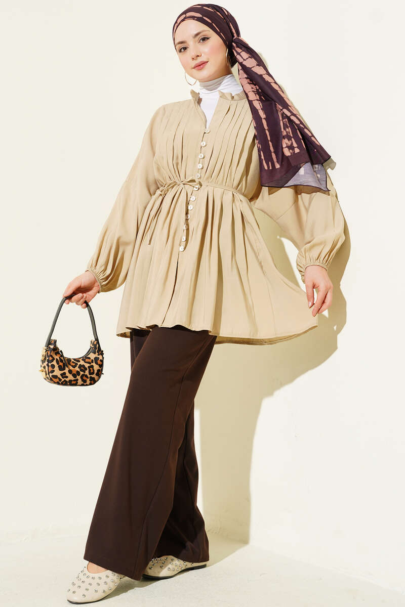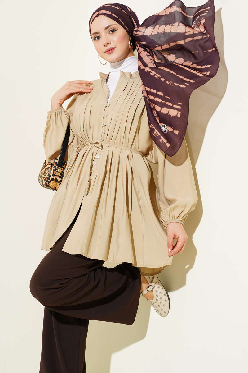 Bel Tünelli Oversize Odesa Gömlek Ekru