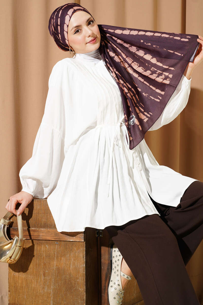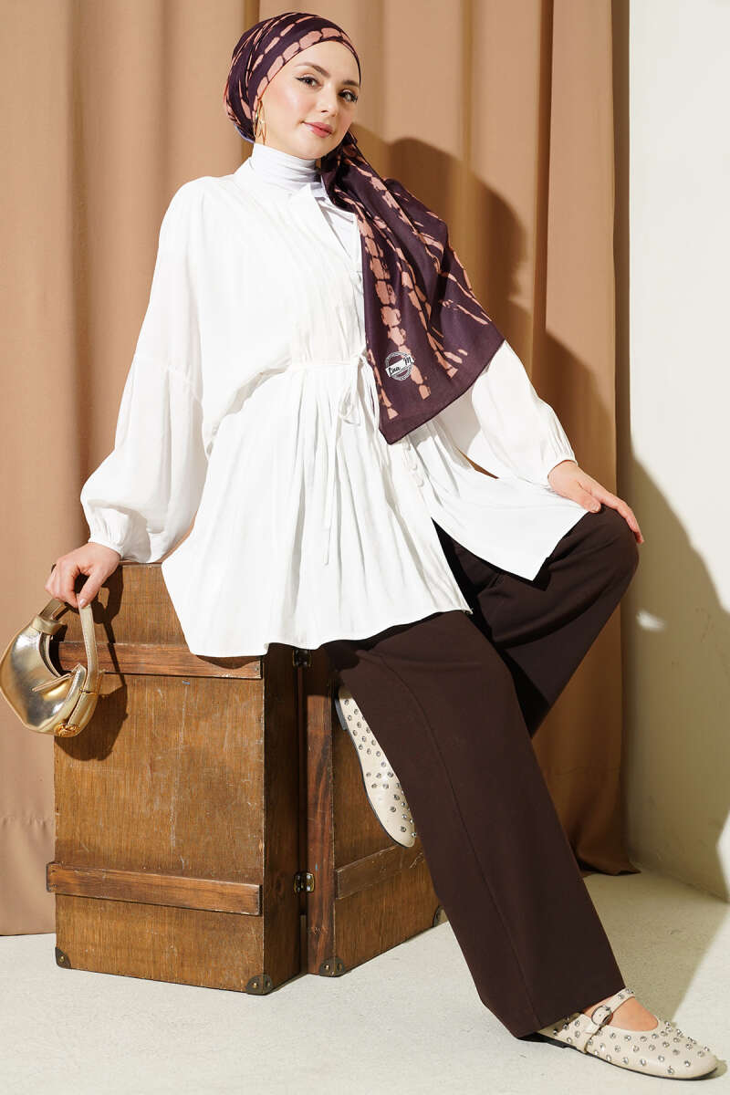 Önü Nervürlü Salaş Tensel Gömlek Beyaz