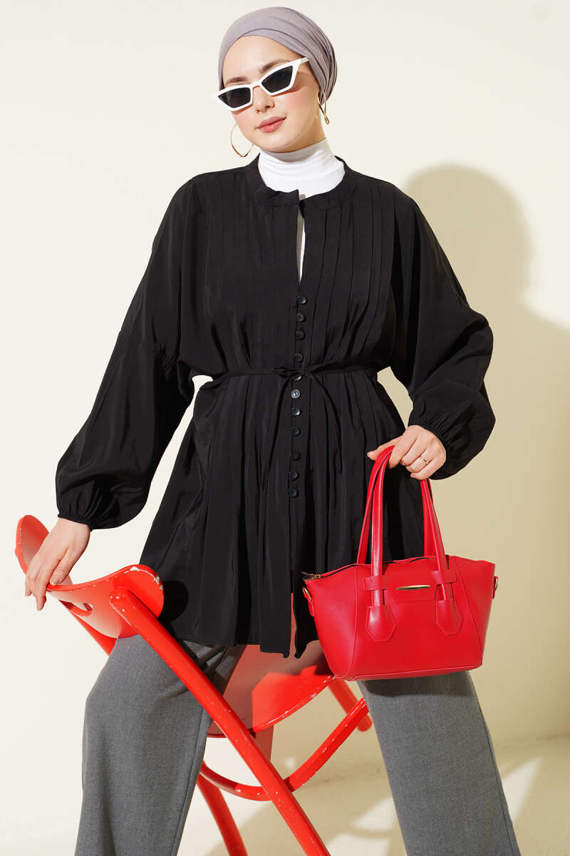 Bel Tünelli Oversize Odesa Gömlek Siyah