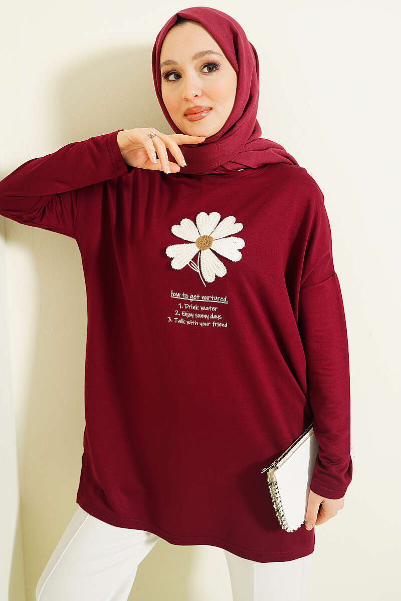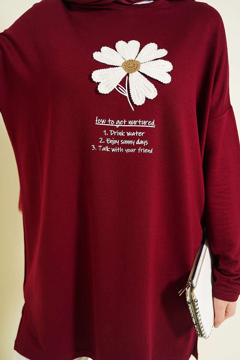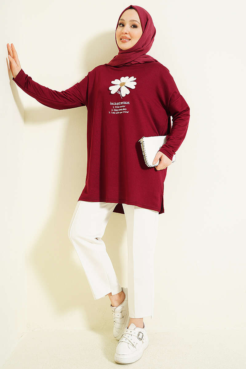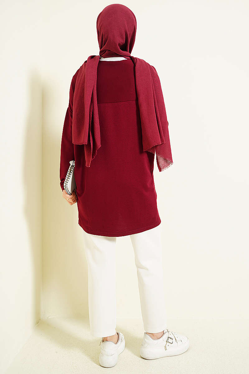 Önü Pileli İp Kuşaklı Tunik Bordo