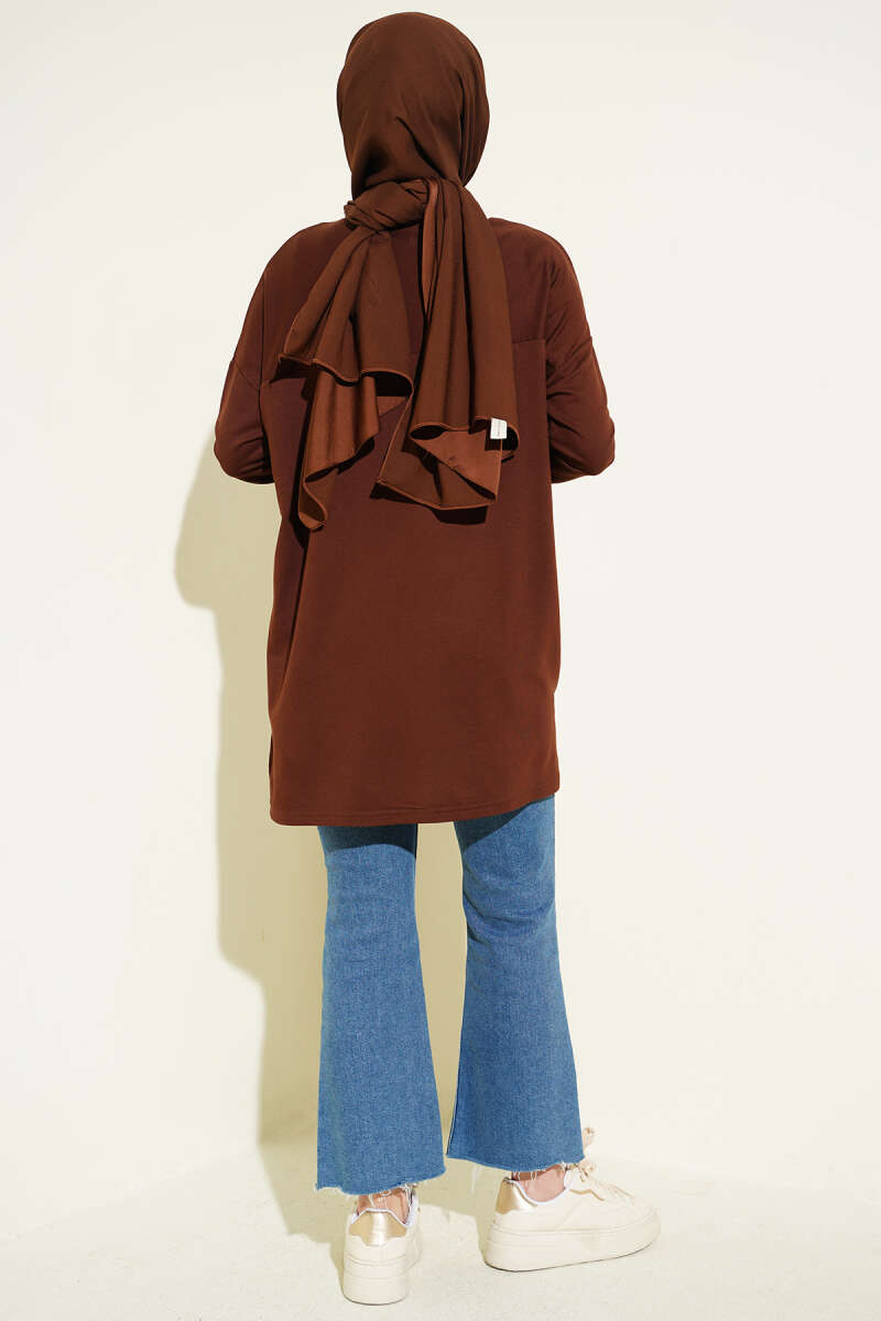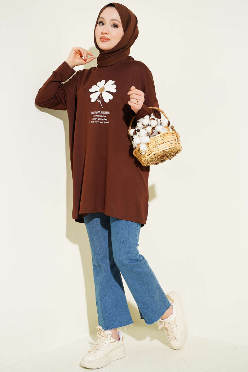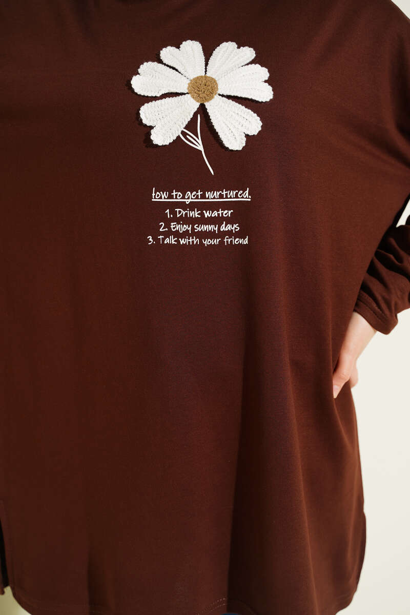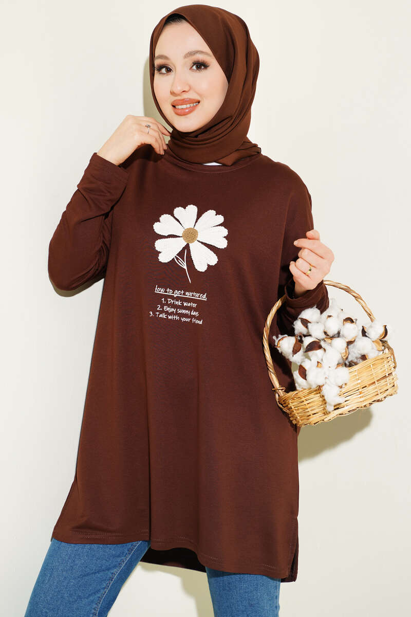 Önü Papatya Armalı Tunik Kahve