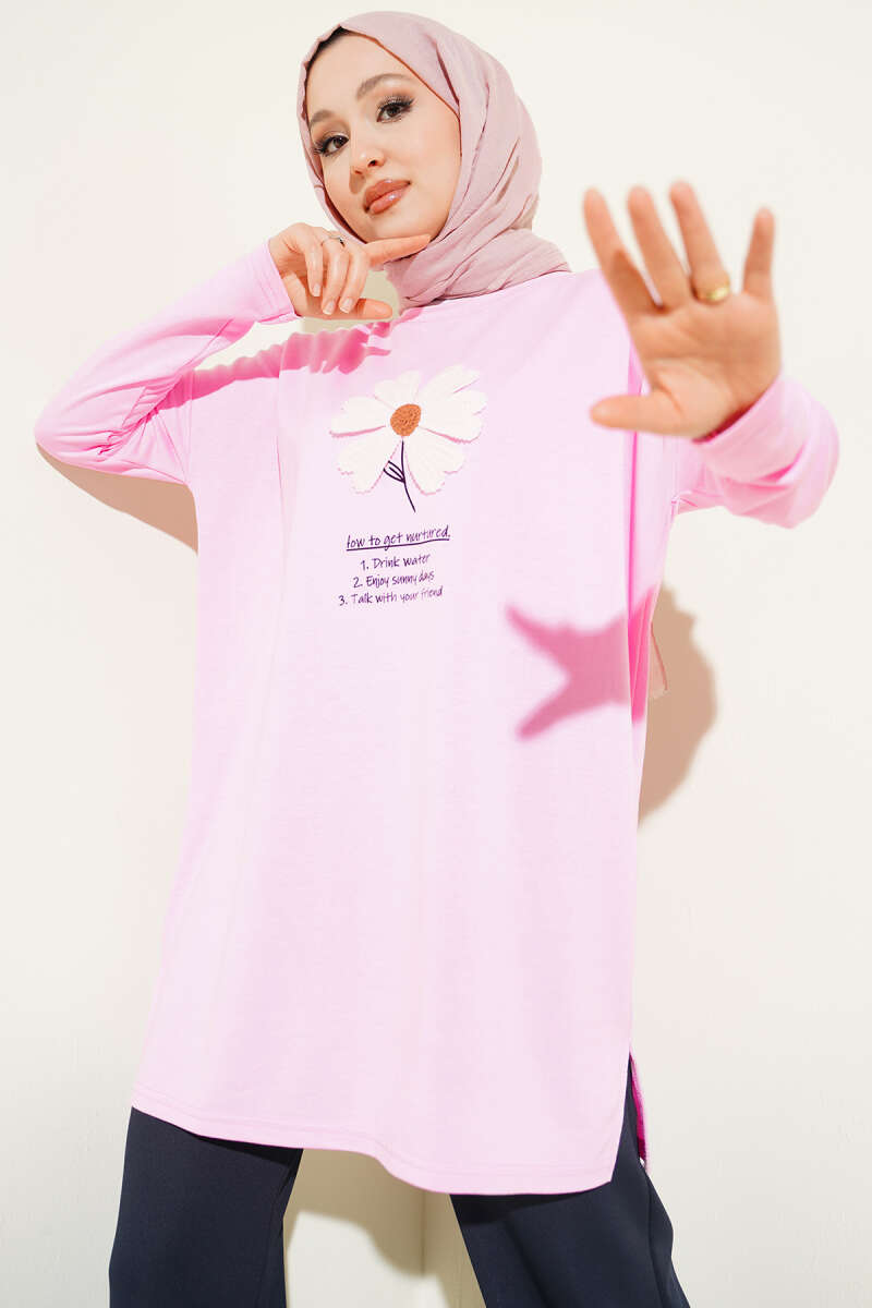 Önü Papatya Armalı Tunik Gri