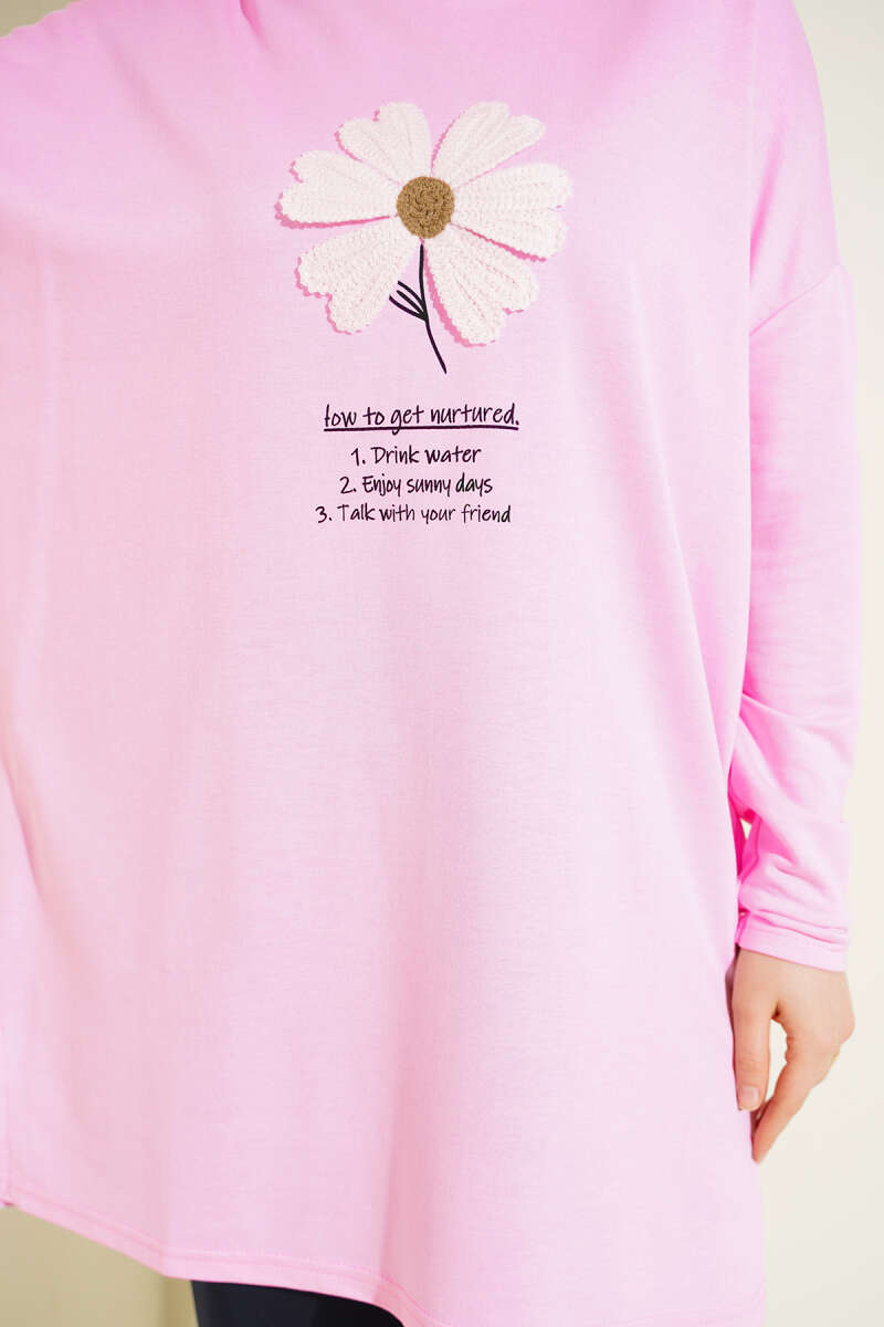 Önü Papatya Armalı Tunik Siyah