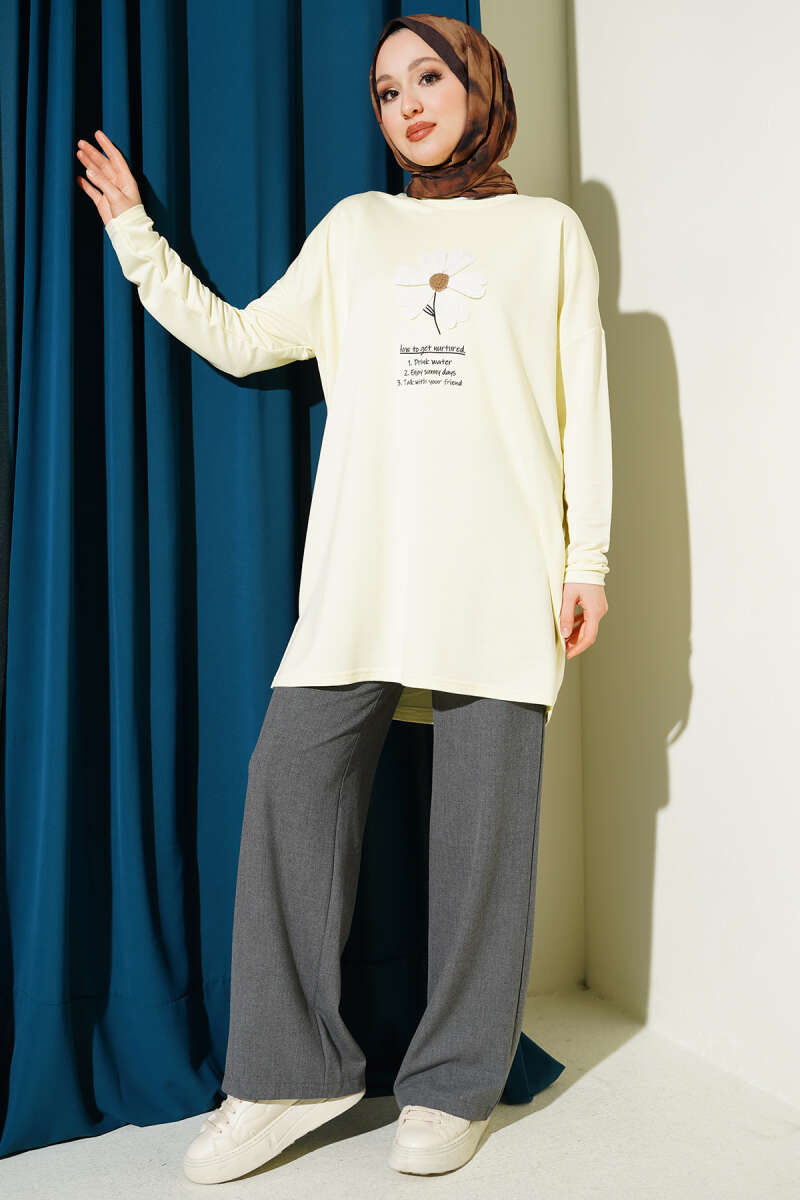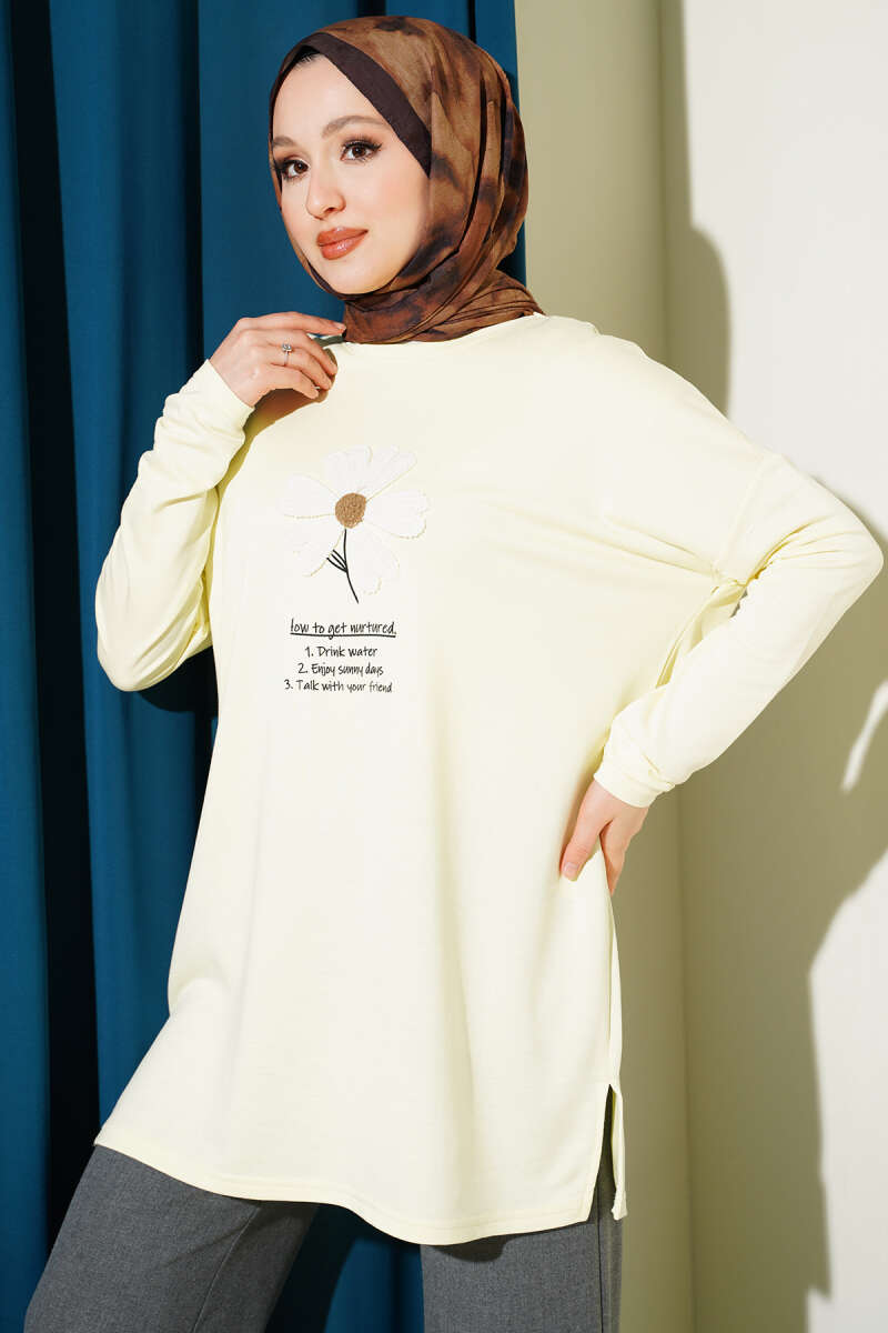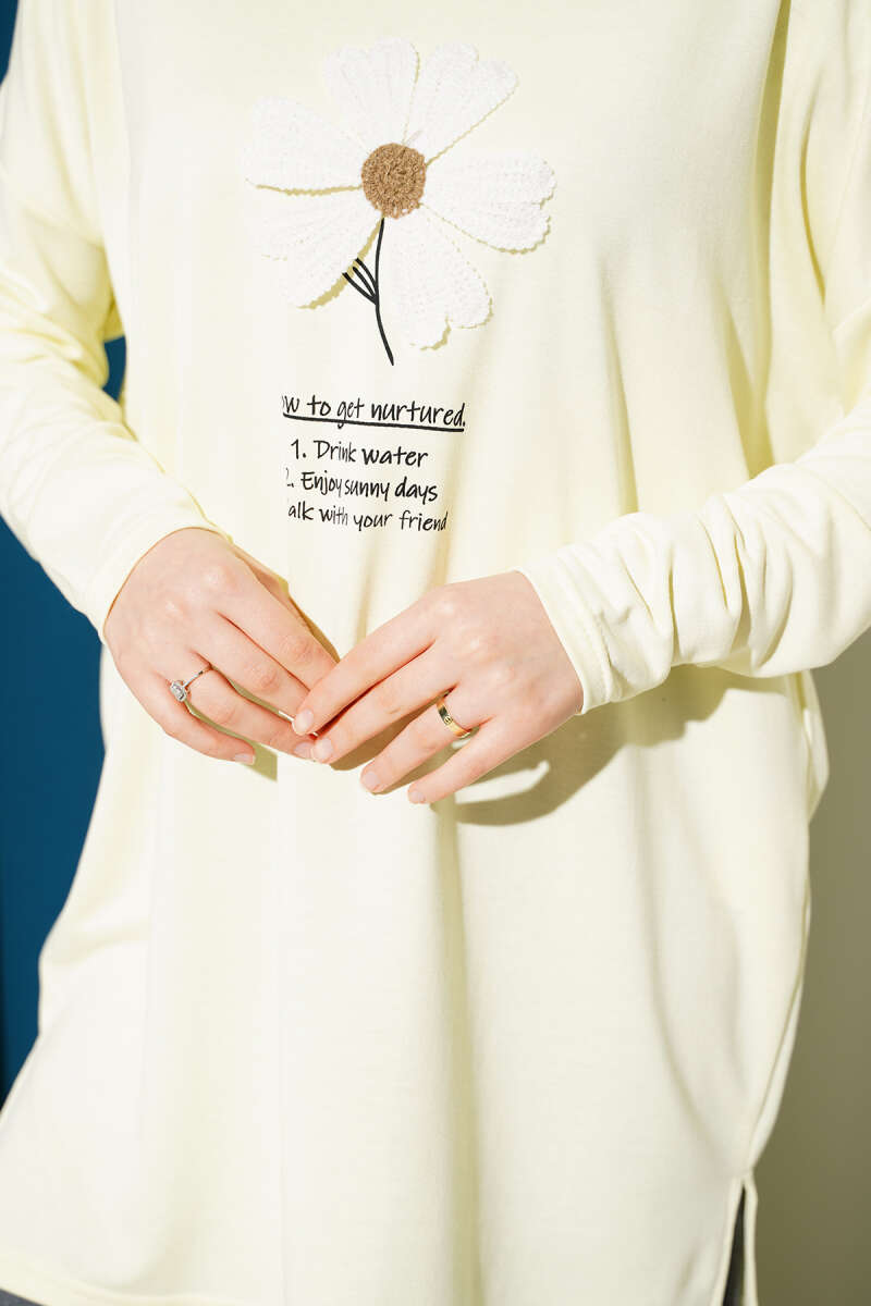 Önü Papatya Armalı Tunik Sarı