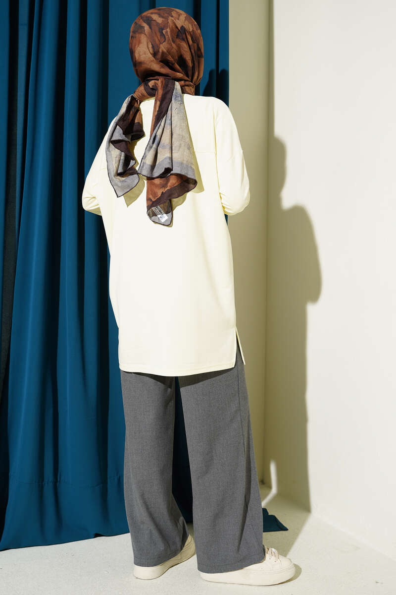 Önü Papatya Armalı Tunik Bej