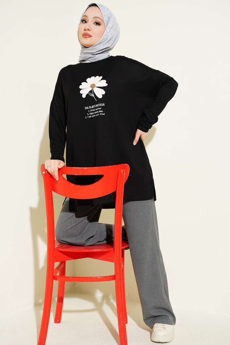 Denizci Yaka Nervür Detaylı Tunik Kahve