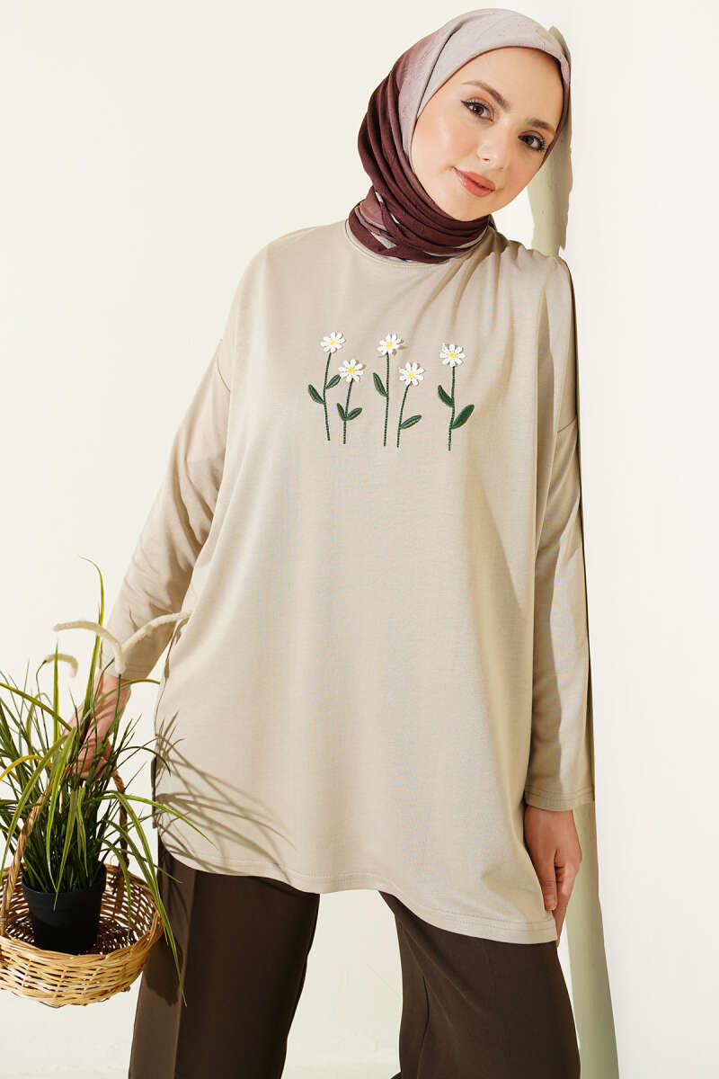 Kare Yaka Uzun Kol Sandy Crop Vizon