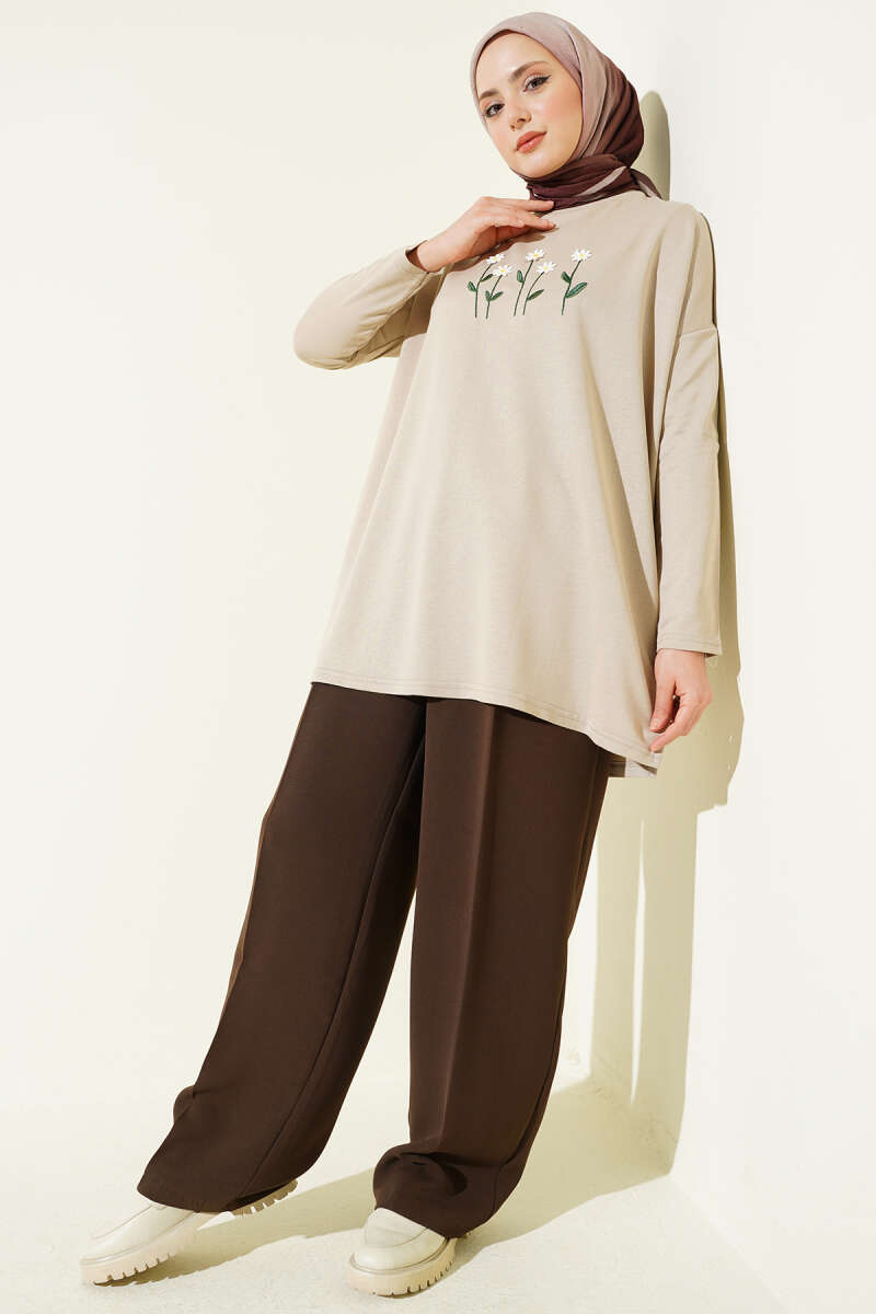 Kare Yaka Uzun Kol Sandy Crop Kahve