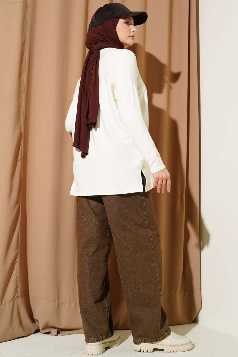 Kare Yaka Uzun Kol Sandy Crop Beyaz