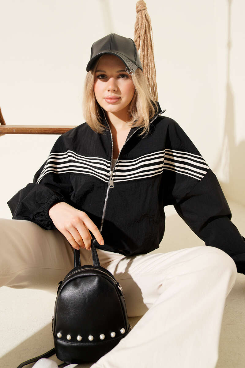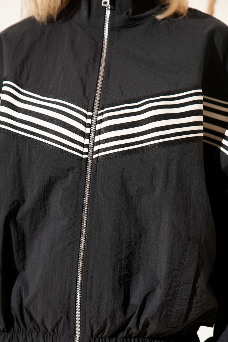 Önü Parça Çizgili Ceket Siyah