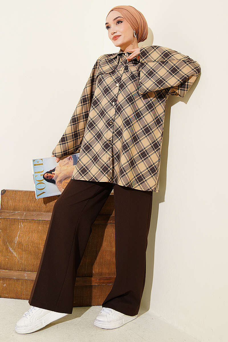 Önü Patlı Ekose Gömlek Kahve