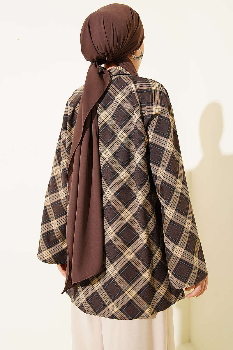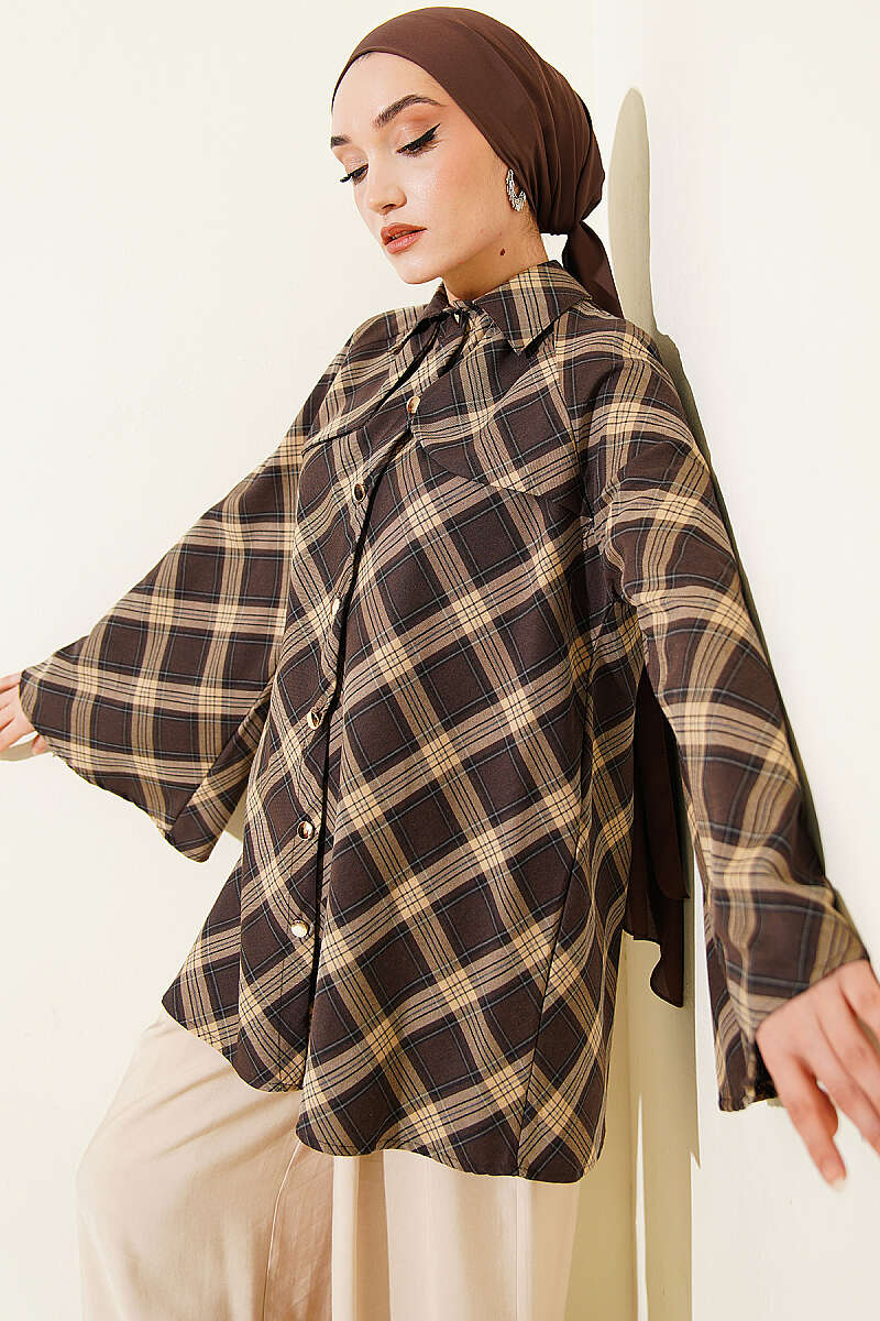 Önü Patlı Ekose Gömlek Kahve