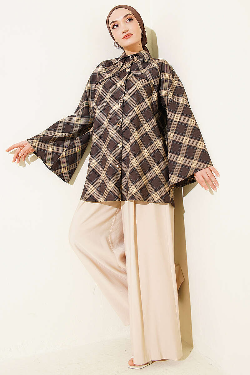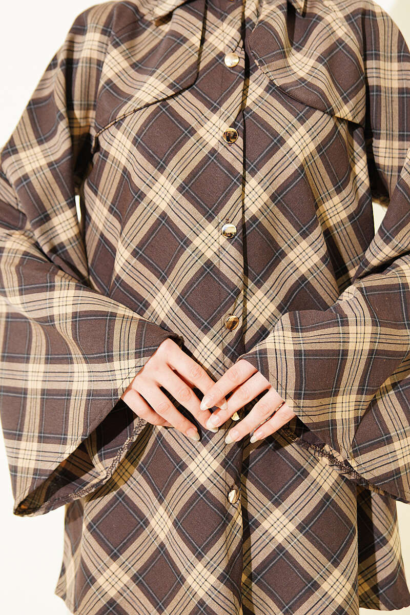 Balon Kol Manşetli Gömlek Kahve