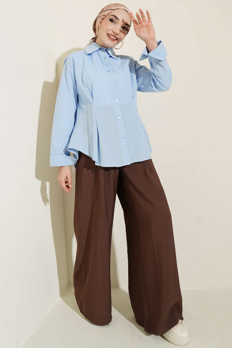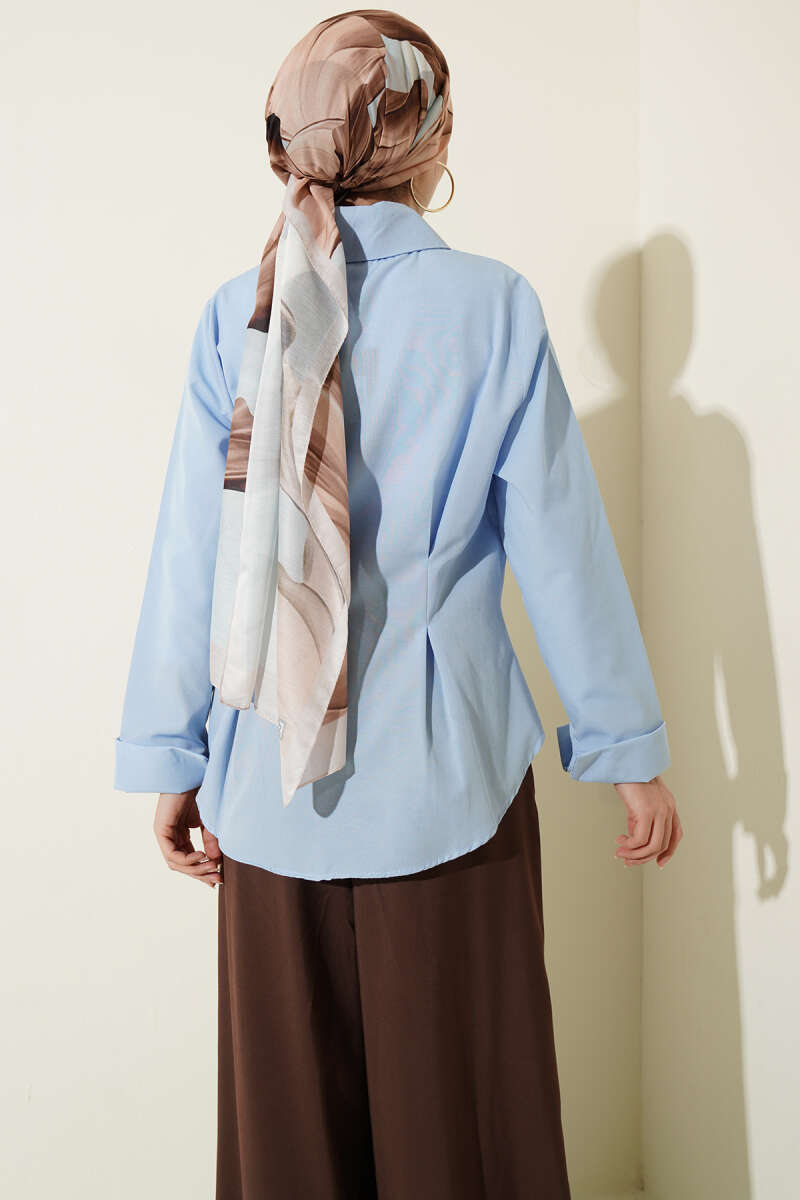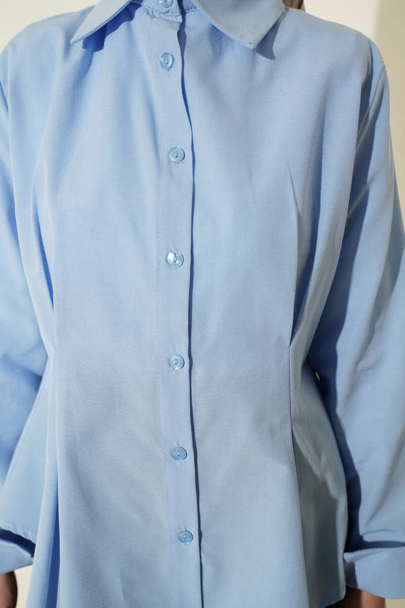 Kat Kat Detaylı Büzgülü Gömlek Mavi